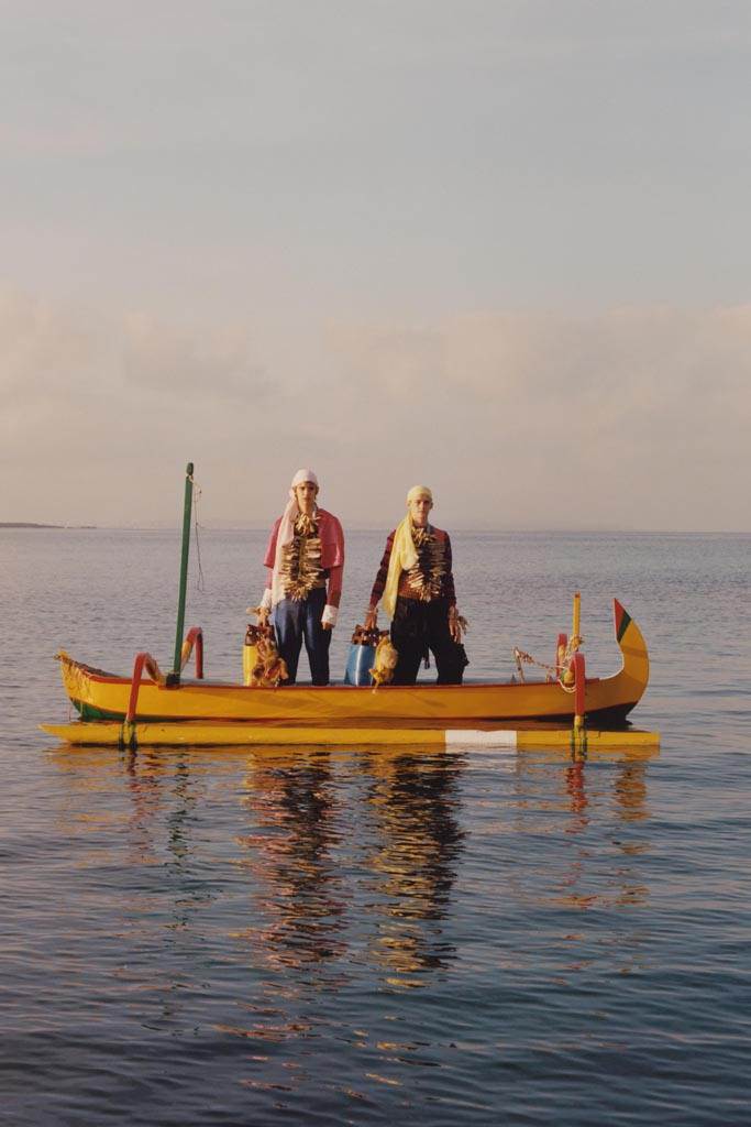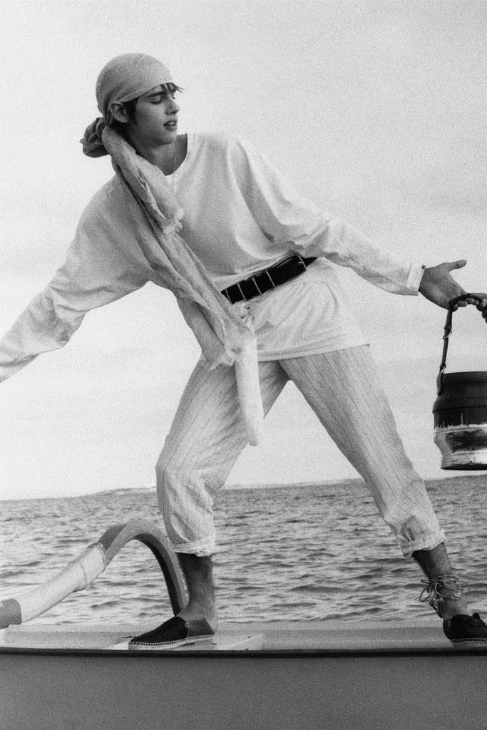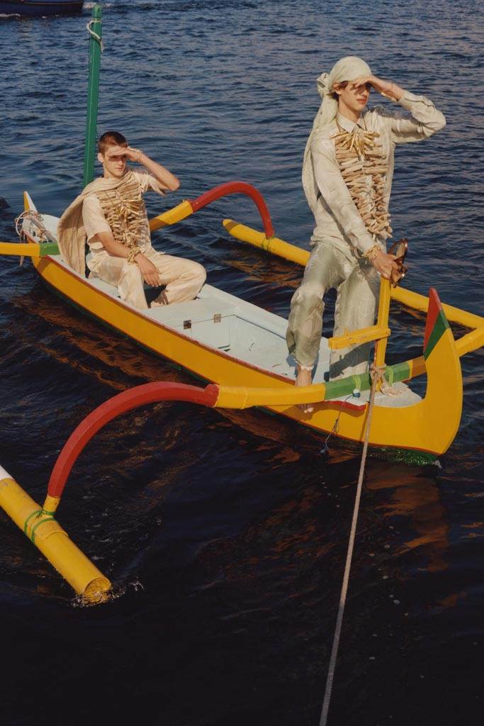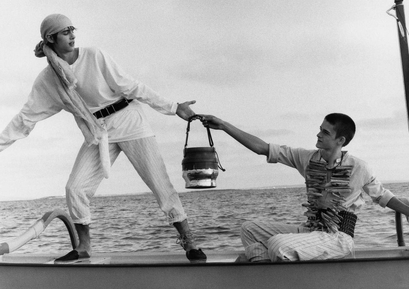 The accompanying photo book set the mood: two young models adrift on a small yellow catamaran, their heads wrapped in pirate scarves, feet shod in croc slippers.