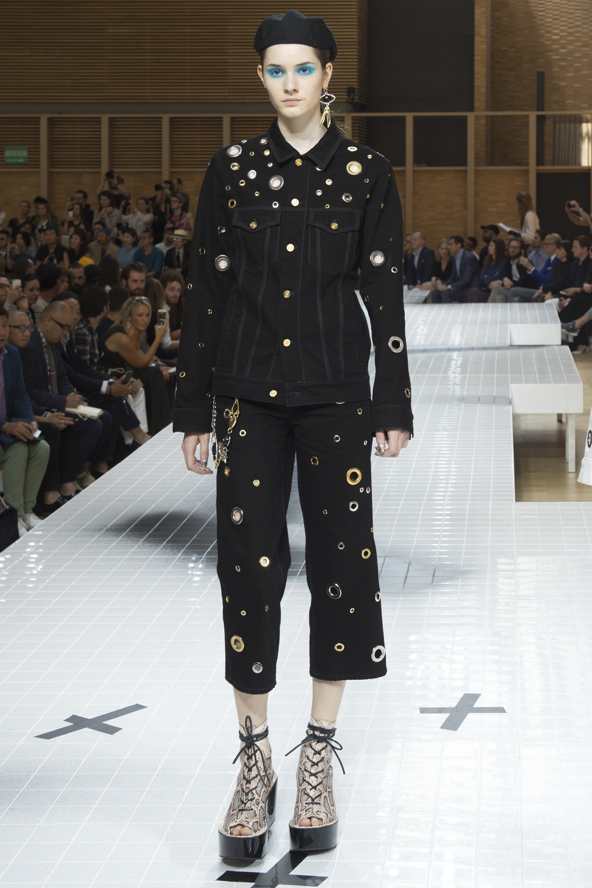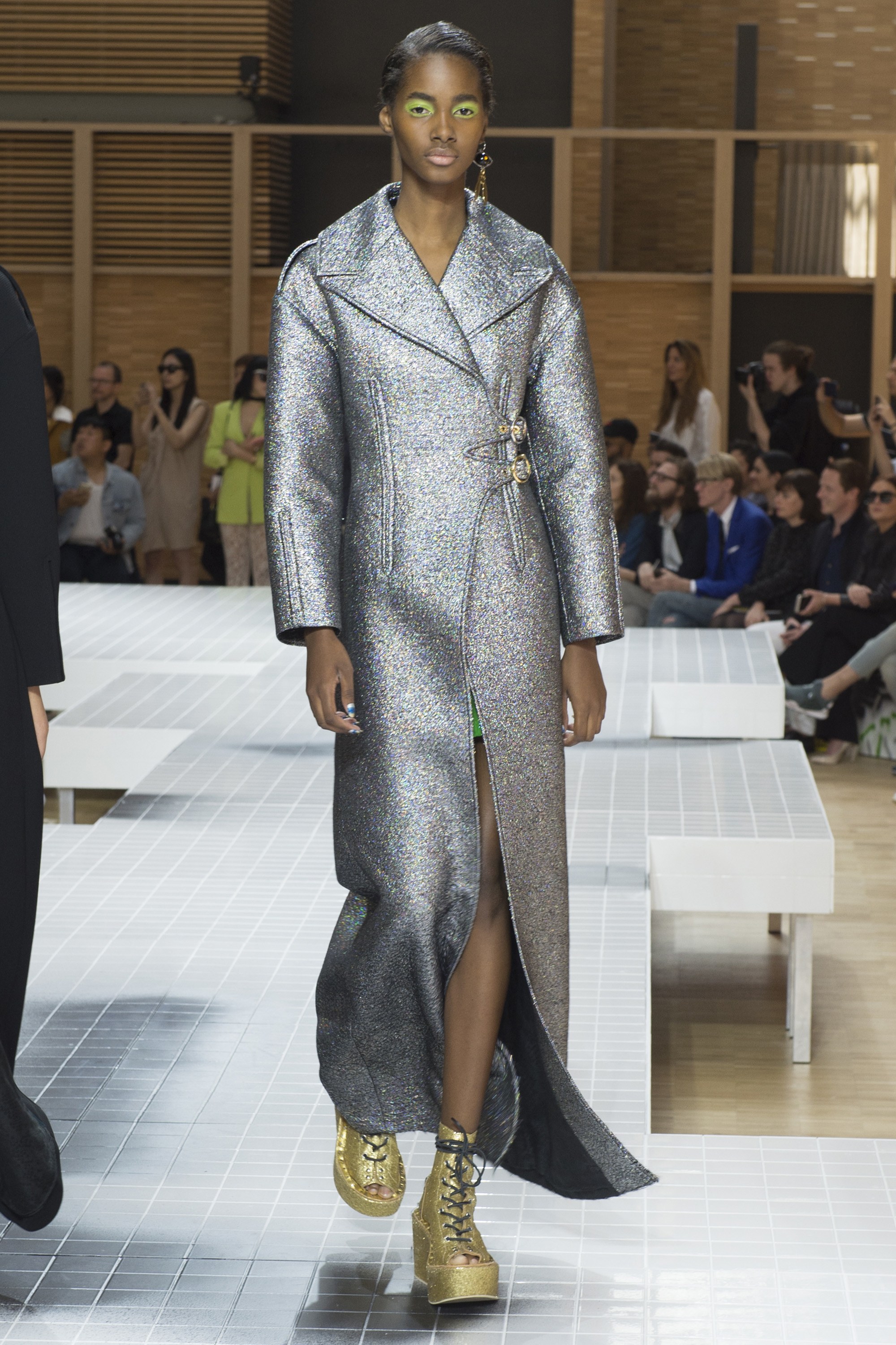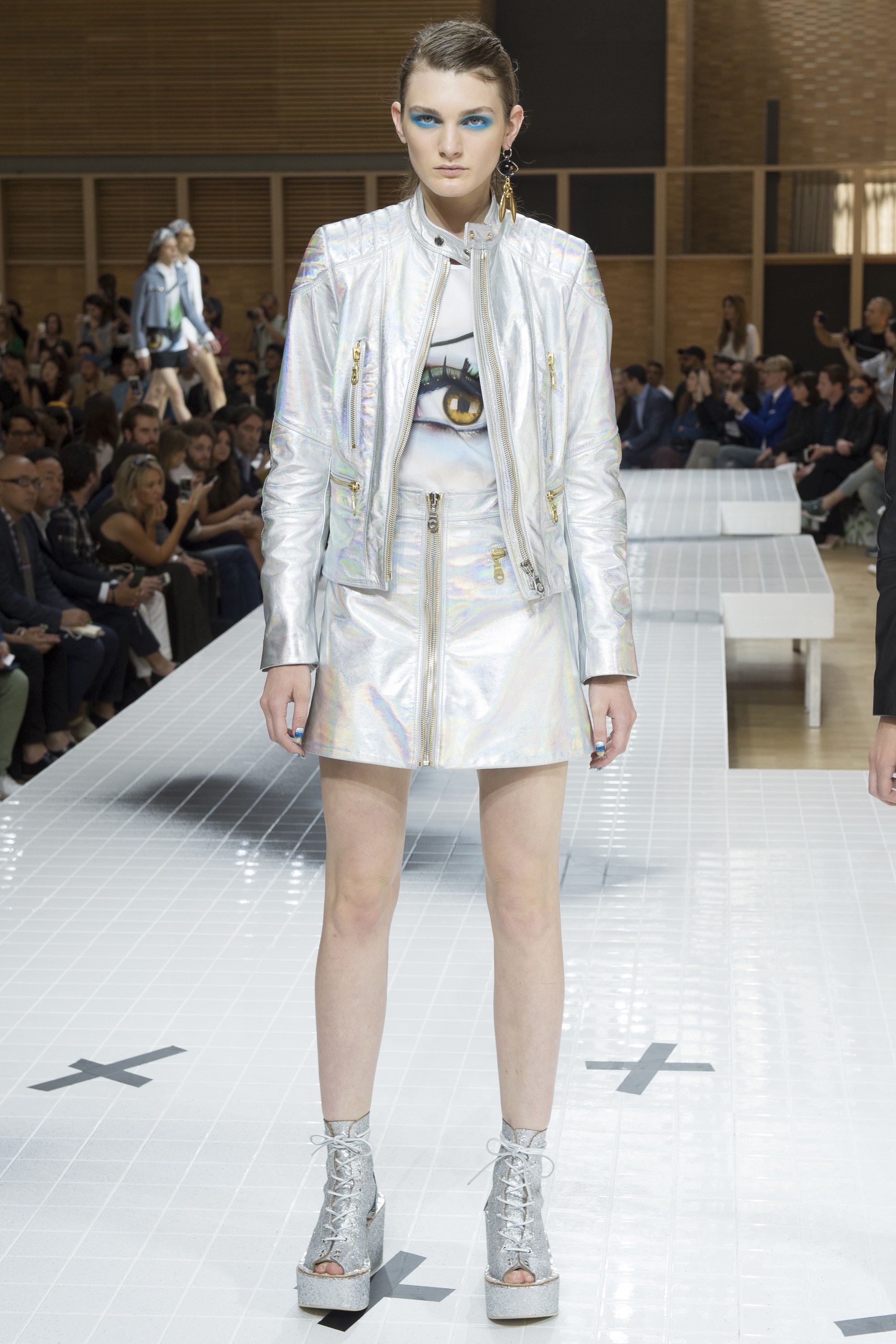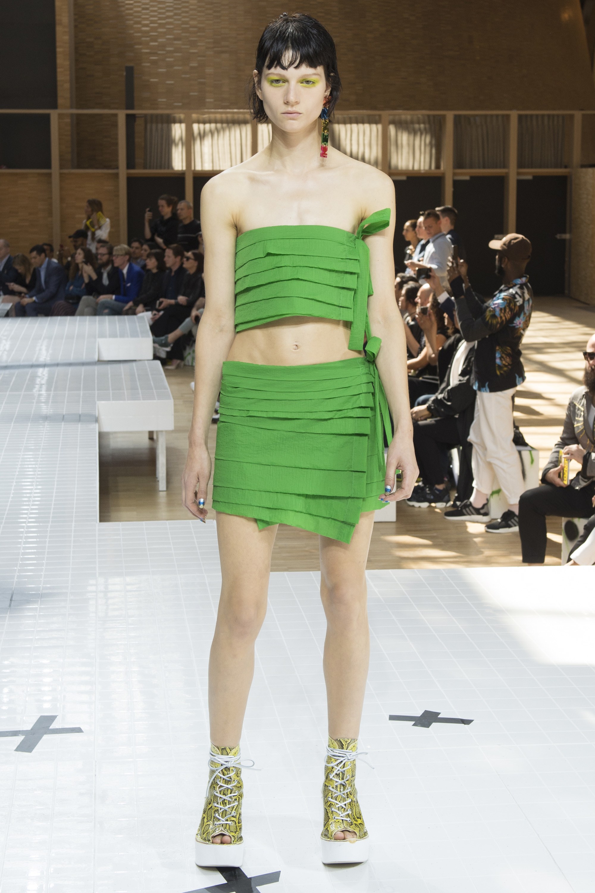 Afterwards, during a chill-out post-show vigil by the models on the scrappily grouted, spray-painted, zig-zag white tile runway, Leon reflected: “It’s interesting, because Carol and I lived through this generation and we wanted this collection to really celebrate nightlife. So I think the way it’s put together is this modern take on this way of dressing. I think there was a freedom in the ’90s, we tried to capture a little bit of that sense of freedom. And the sense of you going out an night with your friends and looking like a pack.”