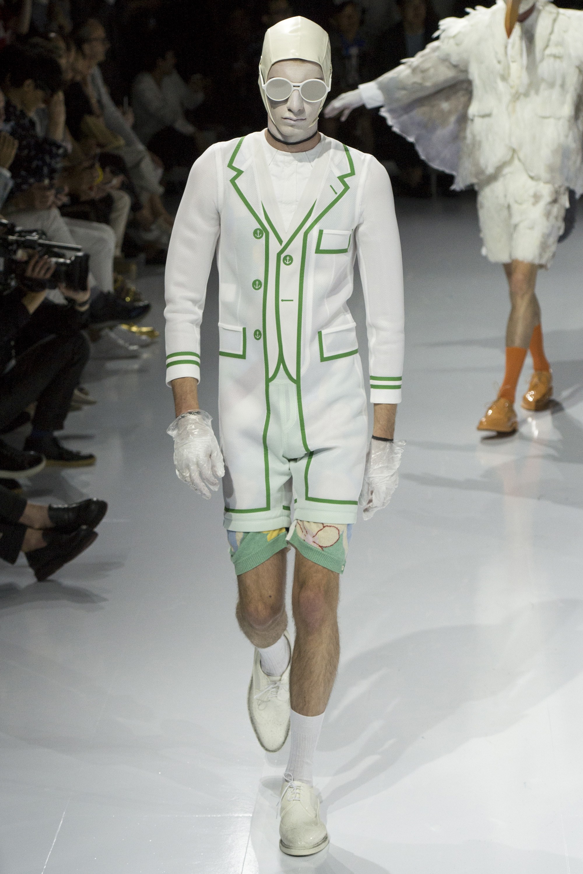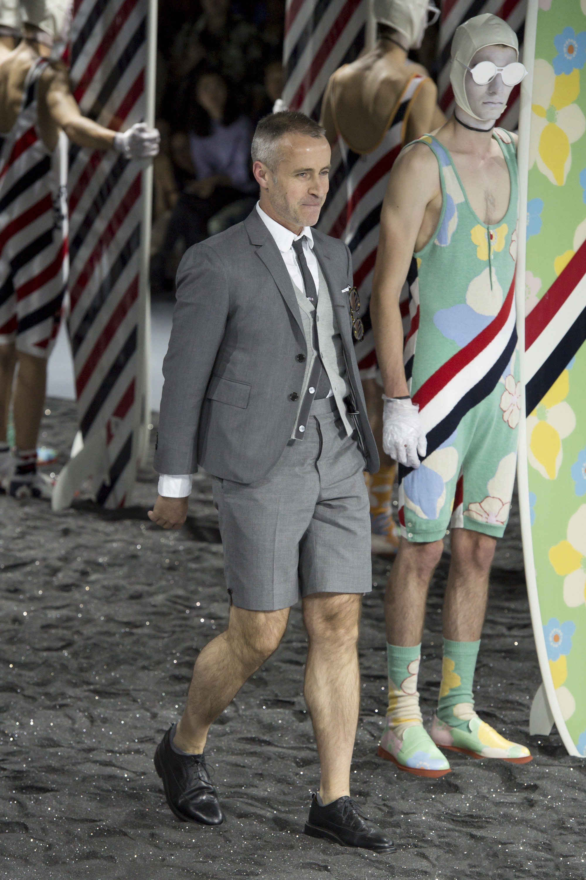 And so it was for Spring, when Browne decided life was a beach and unleashed one of the wittiest, most memorable, and certainly most bizarre runway stagings of his entire career. Considering they’ve previously involved gilded fauns, menageries of animals and hyperinflated Elmer Fudd lookalikes, and male flappers in Maxim’s, that’s a tall order.