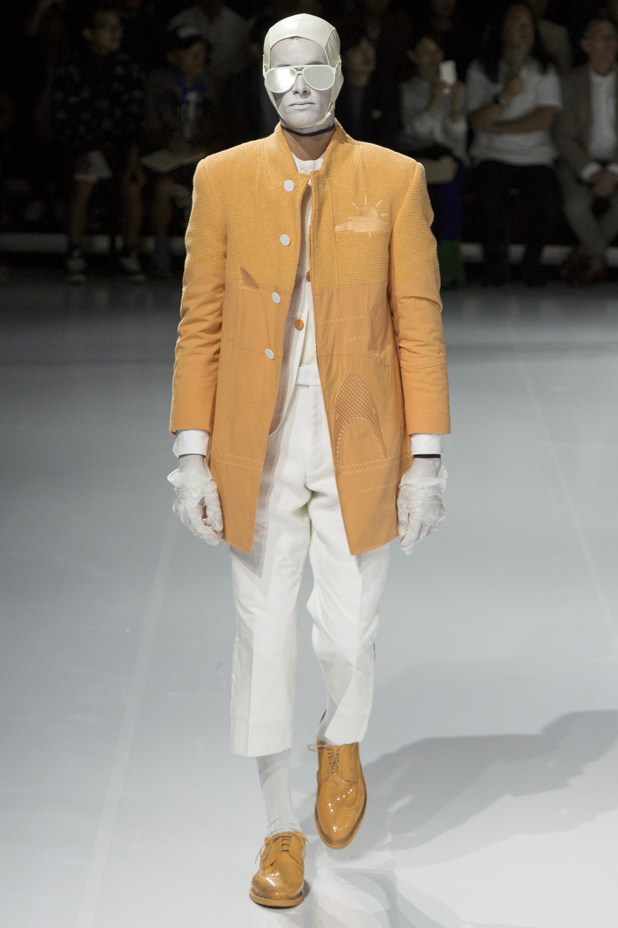 The end of the Paris menswear shows is a time for bleary eyes and stony faces. But here the audience smiled. They laughed. And they even put down their smartphones and applauded, with all the glee of little kids. They also held their breath in a moment’s silence for the esteemed New York Times style photographer Bill Cunningham, whose death was announced yesterday. Browne himself requested the moment of silence. Watching the subsequent runway show unfold, a celebration of fashion’s power to transform, of unabashed exuberance in dress, and of superlative showmanship, you couldn’t help but feel Cunningham would have adored Browne’s audacity and absolute commitment to his crafts. That’s plural, please note: the craft of making clothes, and the craft of spectacle. Browne is an American master of both.