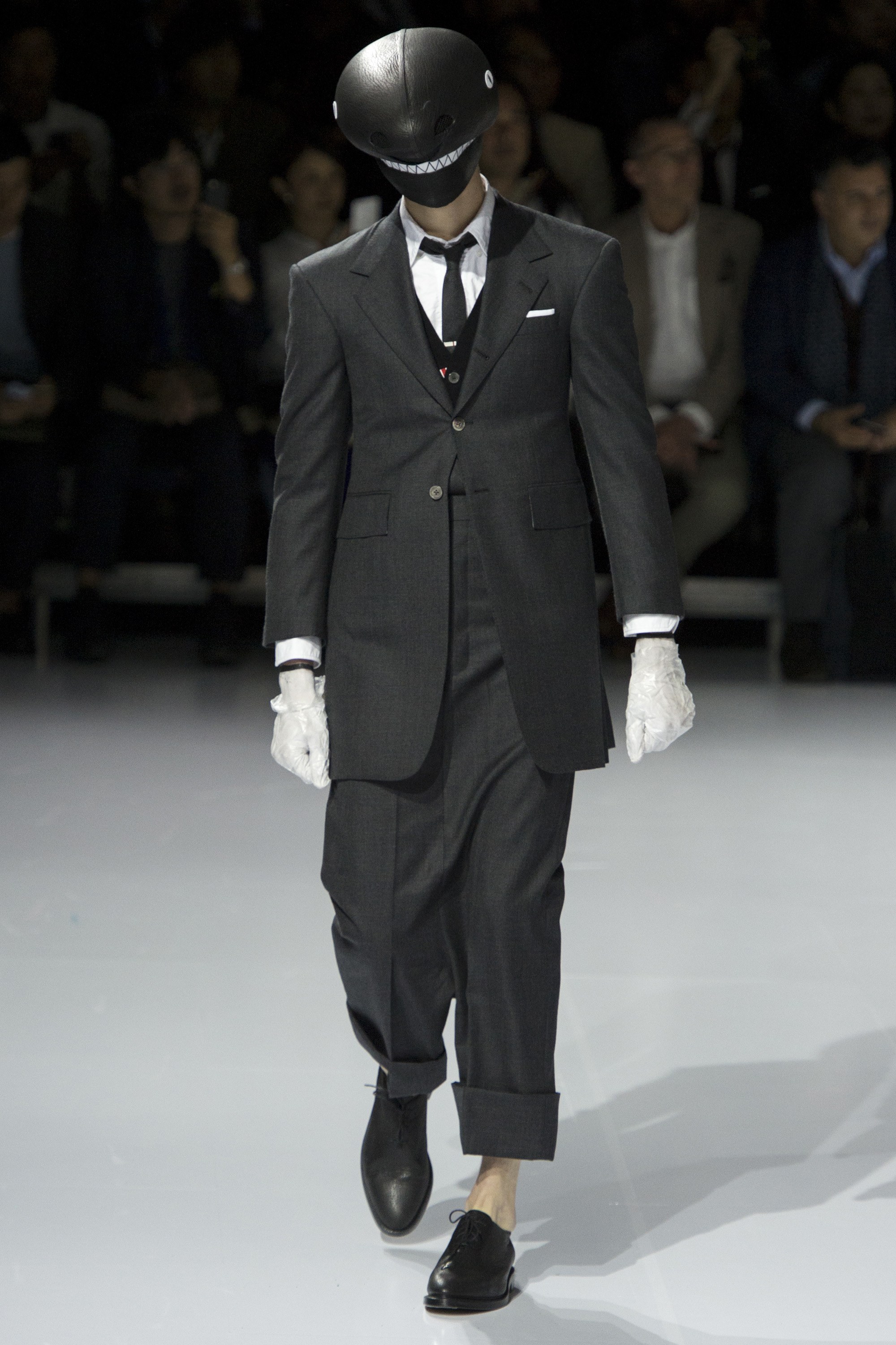 The grayscale world conjured up each season by Thom Browne is bizarre, twisted, sometimes unintentionally hilarious, and sometimes entirely intentionally so. The last is far more entrancing that the first—when you realize Browne is laughing with you, rather than you at him (or, perhaps, vice versa).