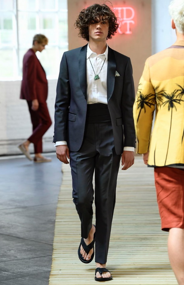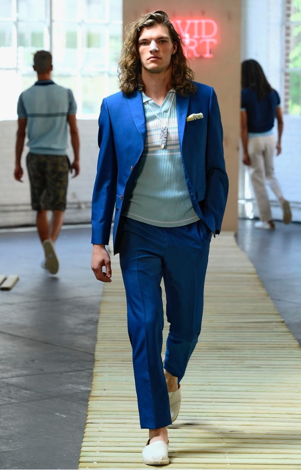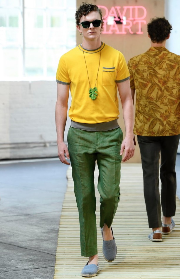 Direct and non-stop today we welcome the New York Fashion Week presenting Menswear’s Spring/Summer 2017. Fashion designer David Hart who explores square patterns for jackets and trousers, polos, and squares all over on shirts into their innovative designs colourfulness. An original, fun, young collection given to everyone full joy to see this.