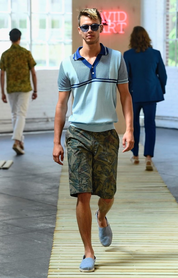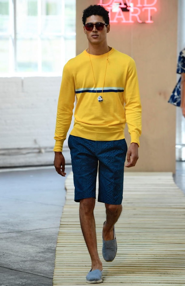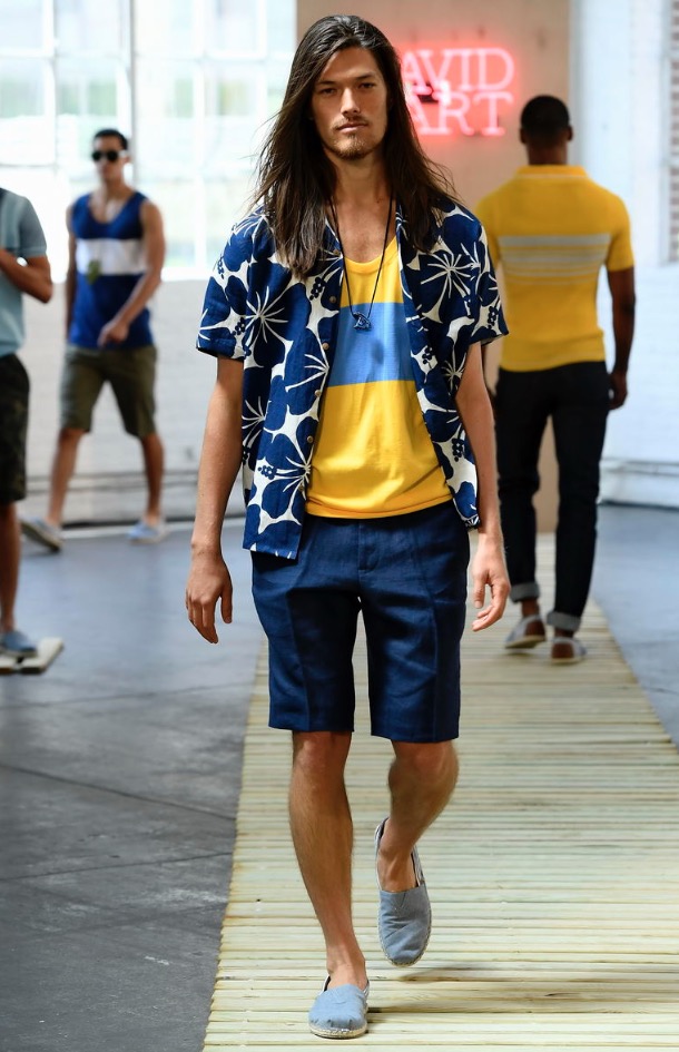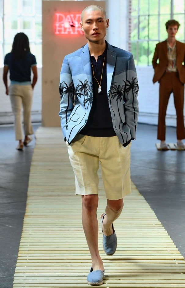Direct and non-stop today we welcome the New York Fashion Week presenting Menswear’s Spring/Summer 2017. Fashion designer David Hart who explores square patterns for jackets and trousers, polos, and squares all over on shirts into their innovative designs colourfulness. An original, fun, young collection given to everyone full joy to see this.