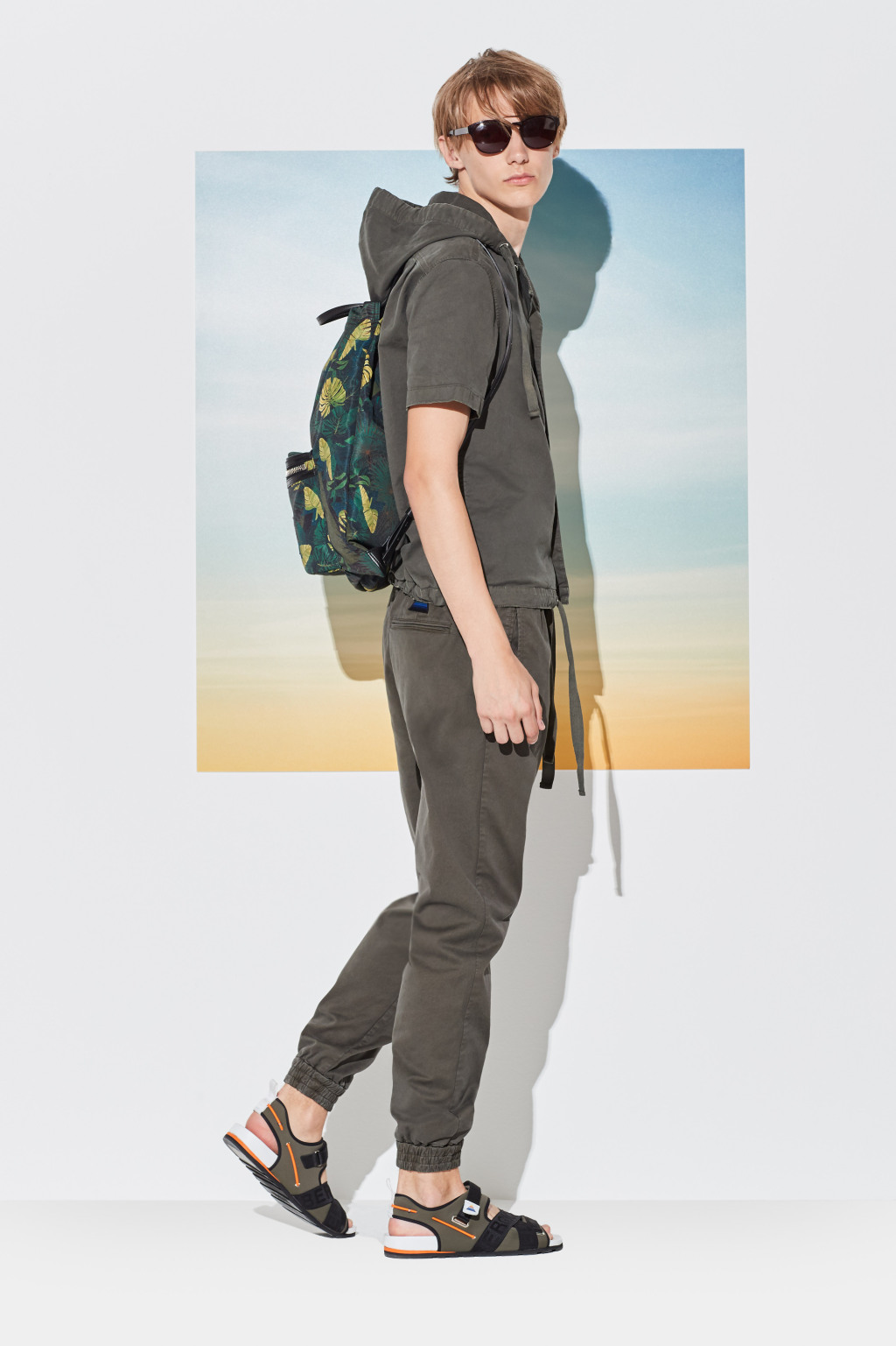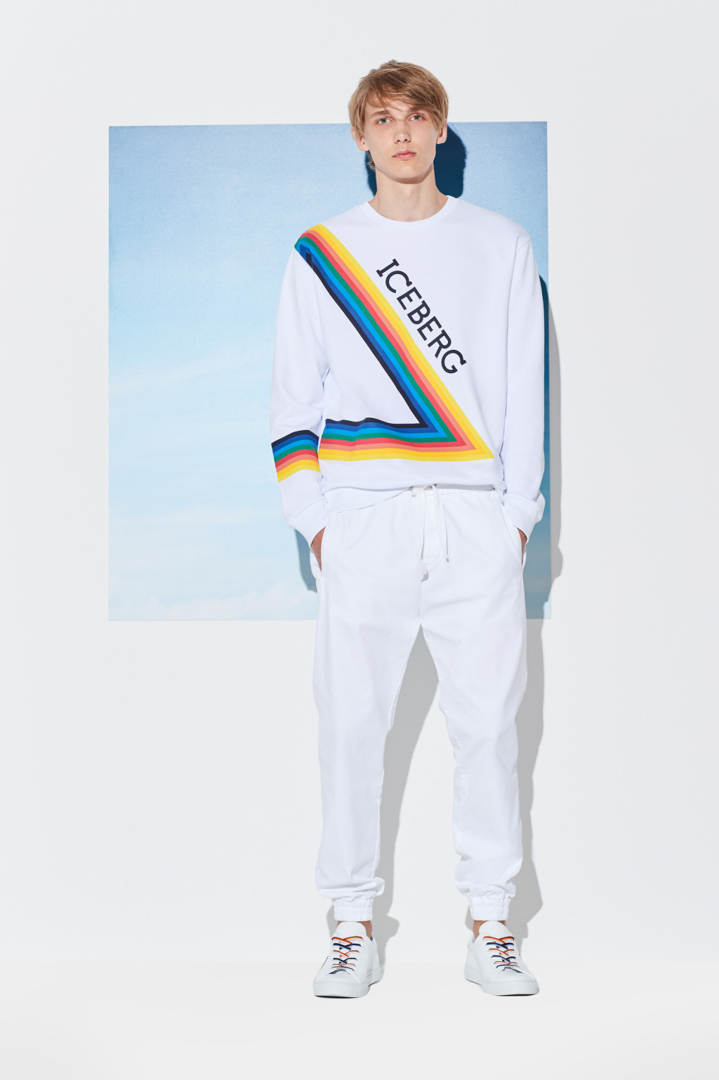 Iceberg creative director James Long designed a collection infused with a playful, joyful vibe. A maritime theme emerged in the lineup that was filled with knits and T-shirts embellished with stripes, while the season’s signature shirt — a cotton hooded style — was inspired by sailors’ uniforms.