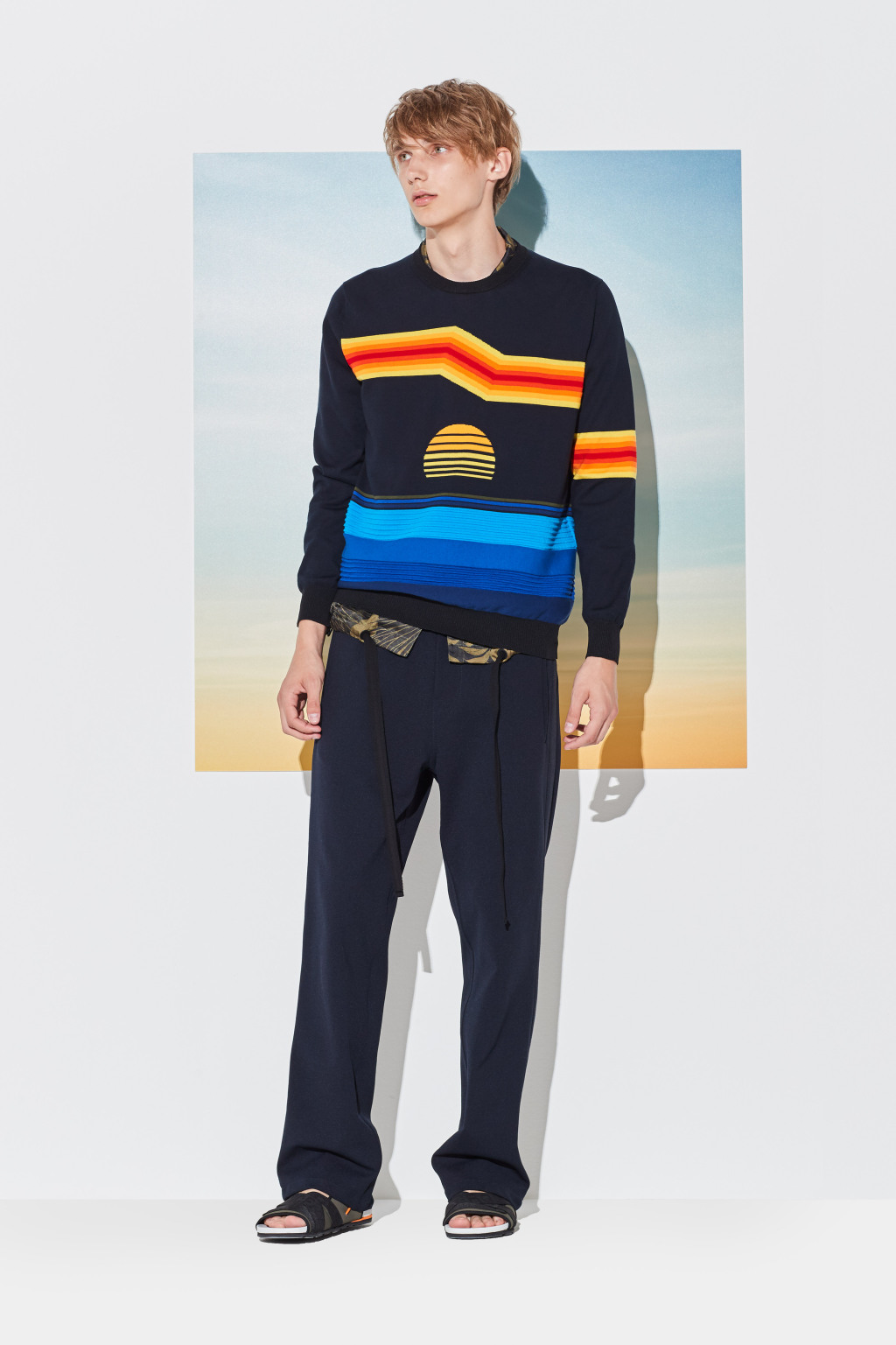 Iceberg creative director James Long designed a collection infused with a playful, joyful vibe. A maritime theme emerged in the lineup that was filled with knits and T-shirts embellished with stripes, while the season’s signature shirt — a cotton hooded style — was inspired by sailors’ uniforms.