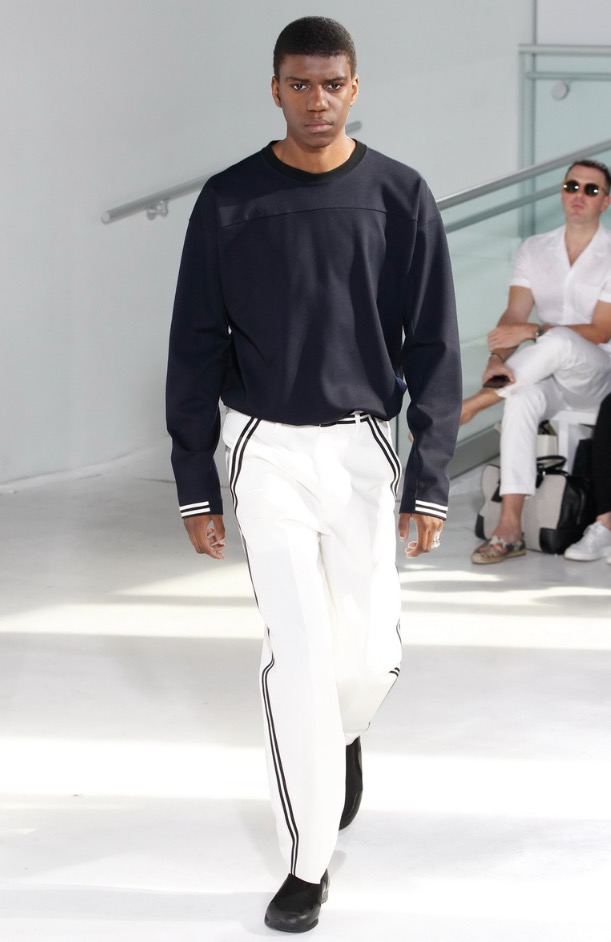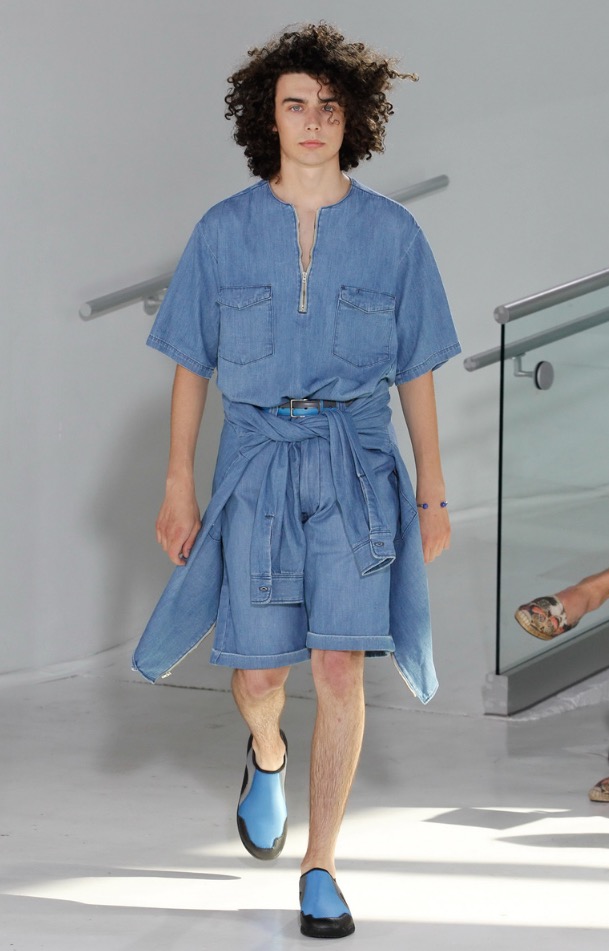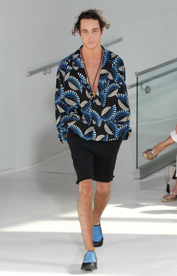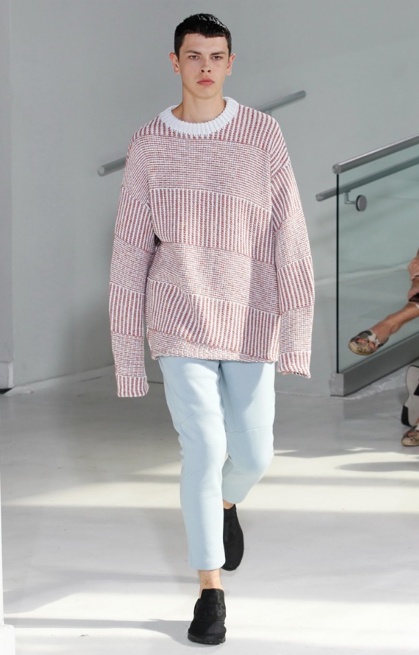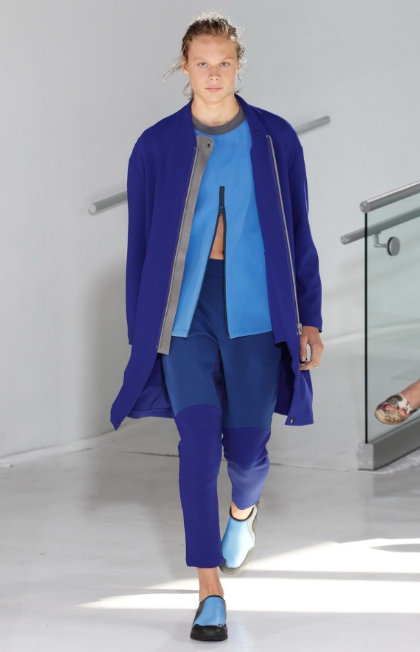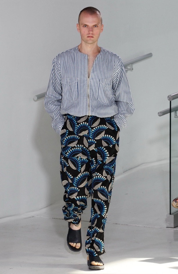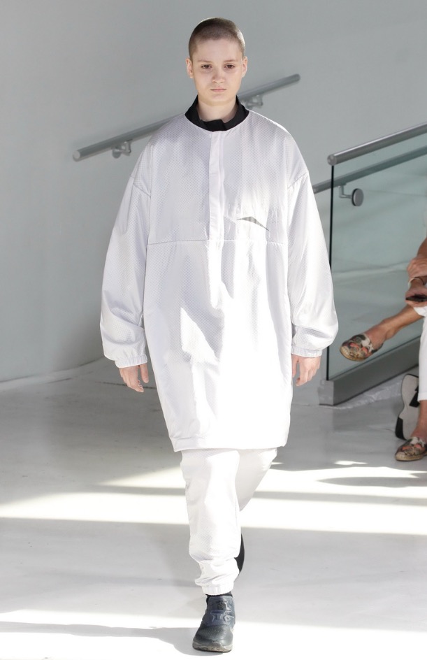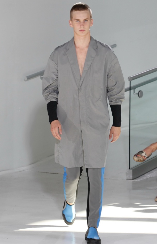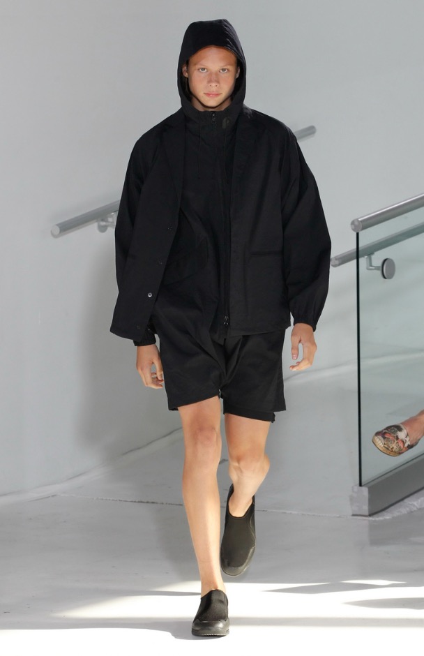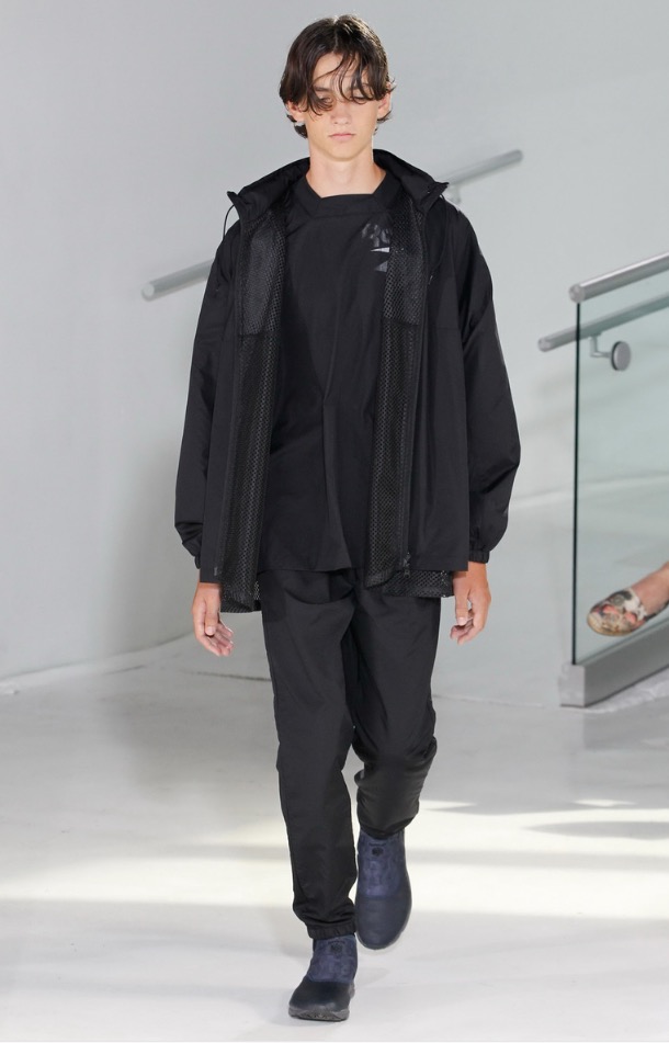 So far there’s been no shortage of bomber jackets, jogger pants and anoraks on the New York runways and although N.Hoolywood designer Daisuke Obana offered up these active-influenced items, his take on the pieces felt less conventional. He achieved this by utilizing fluid fabrics, painterly abstract prints and typography from Tokyo-based calligrapher Mikitype.