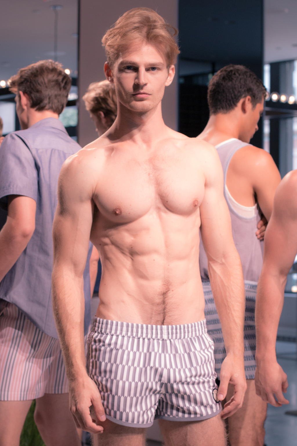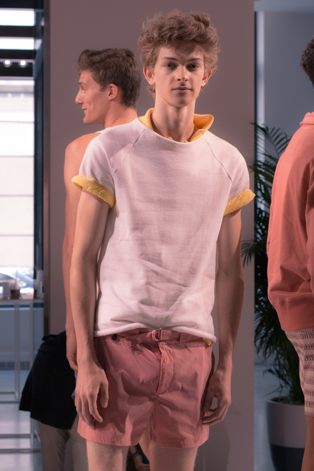 The color story was influenced by Andrew Wyeth, an artist from Neff’s hometown, Chadds Ford, Pa., who was known for his landscape paintings with egg-shell finishes. In the collection, this showed through in chocolate brown and dusty pink swim trunks decorated with contrast piping, knit yellow swim shorts and navy sweaters.