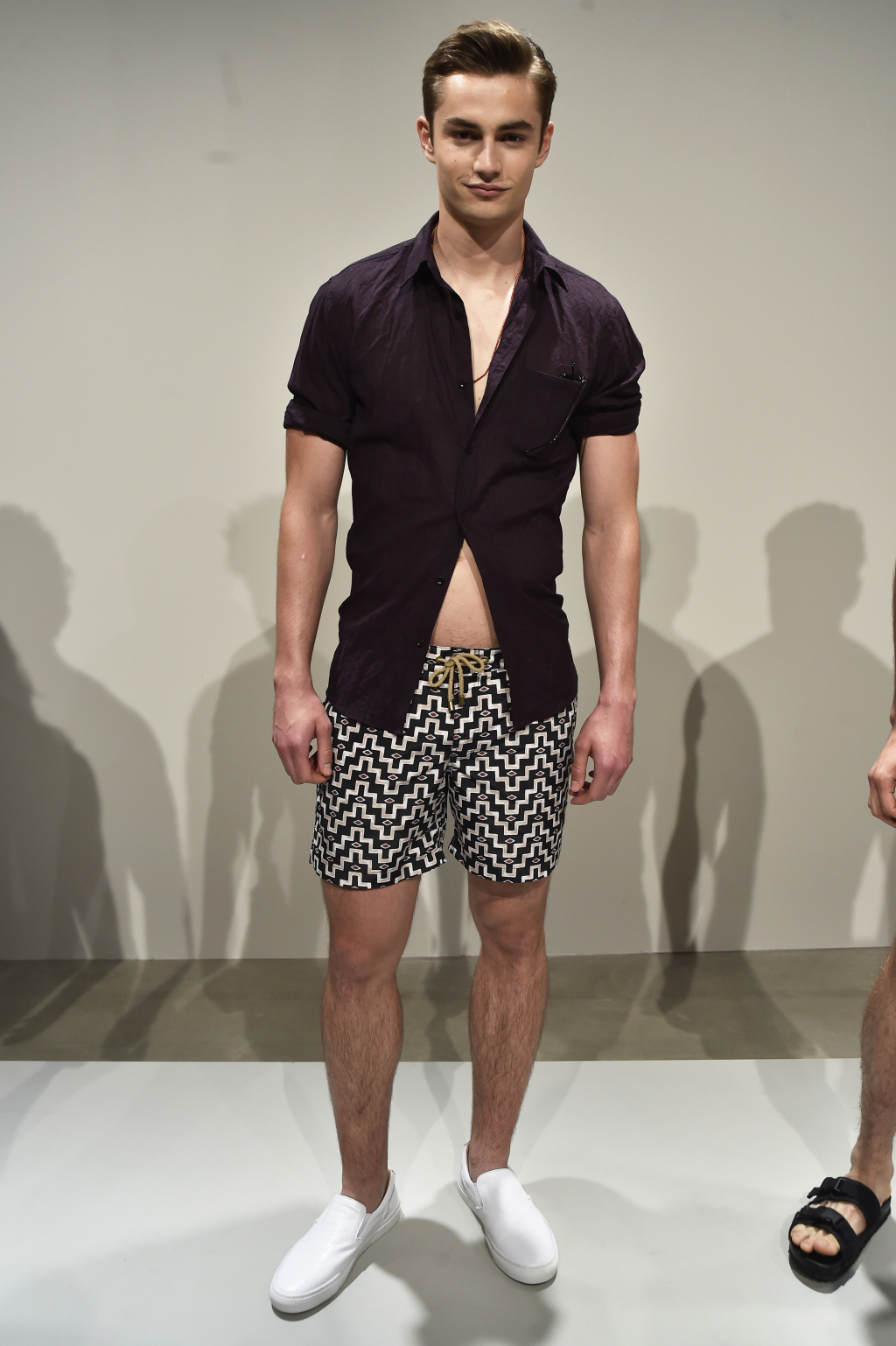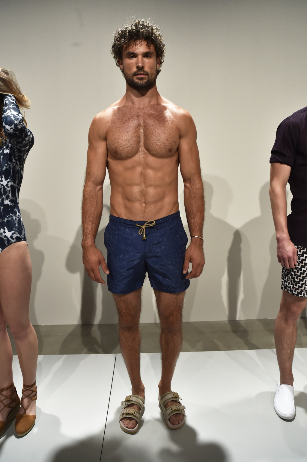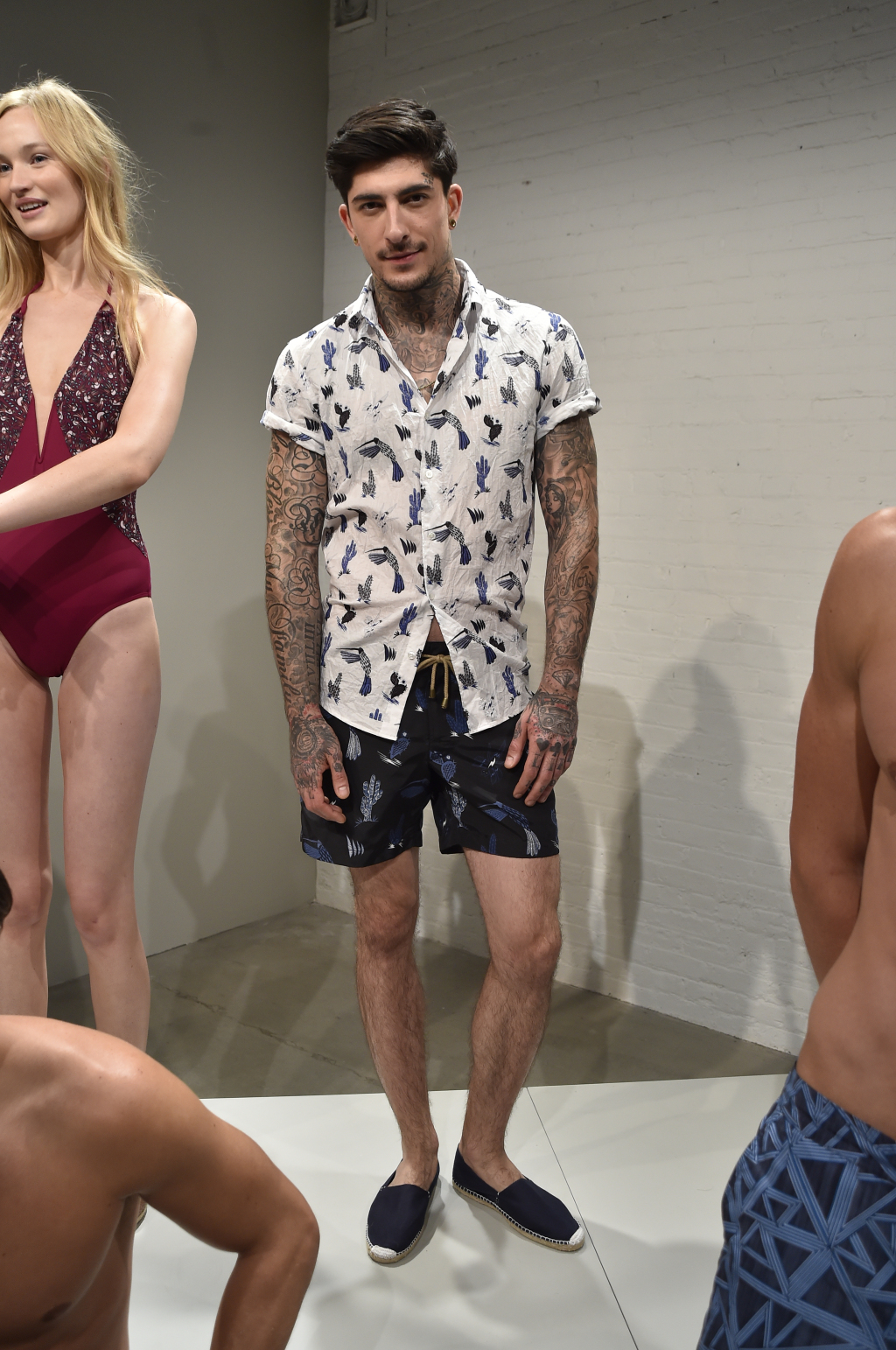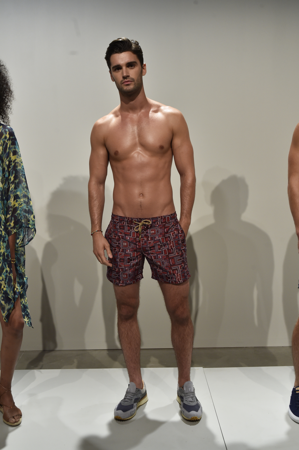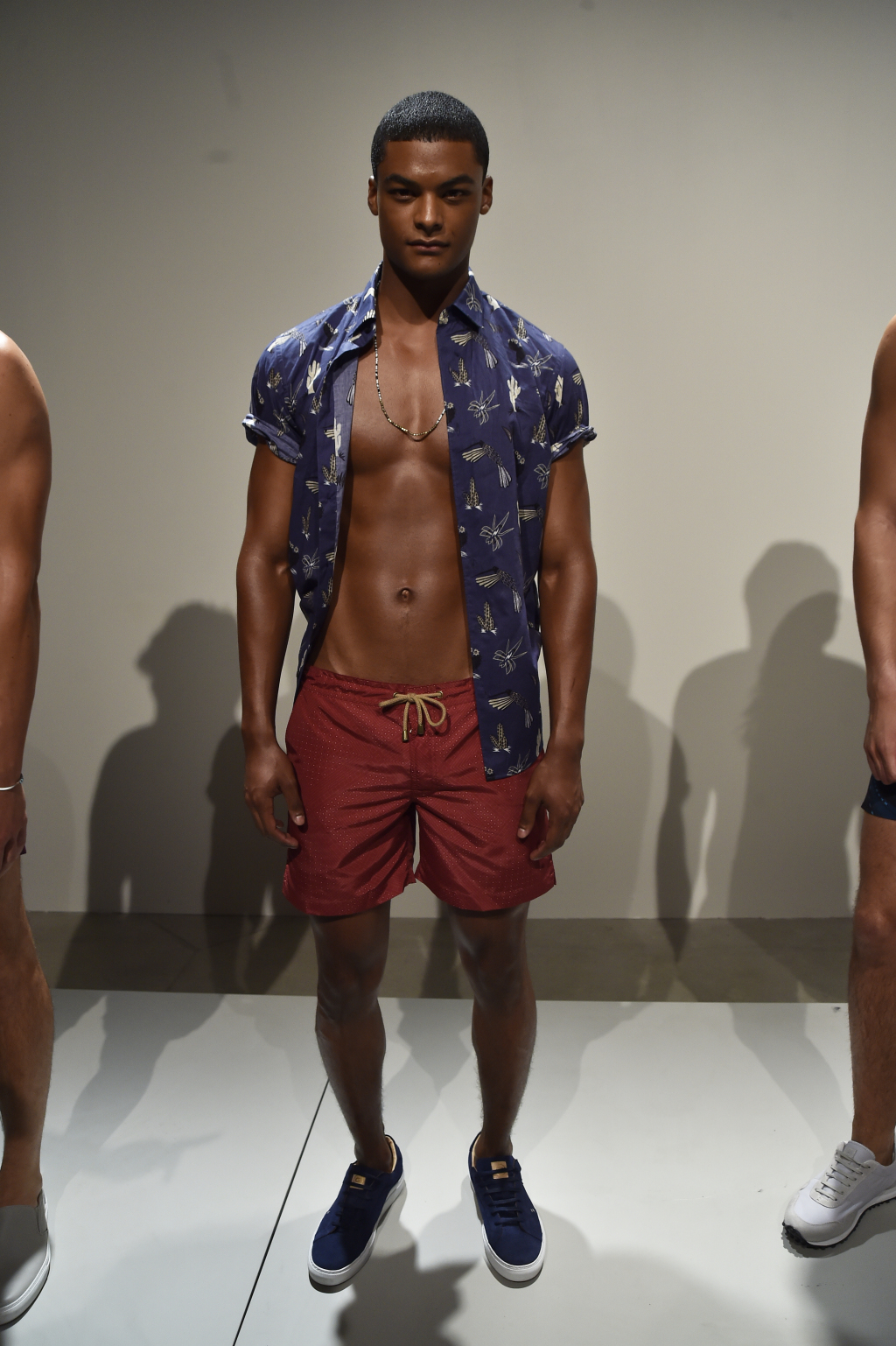 The trunks, which were all cut above the knee, included a variety of geometric prints, cactus patterns and a cube camo design that mimicked broken pieces of pottery. The prints were all derived from the Meso-American era in Mexico but were given a modern twist by Sotelo.