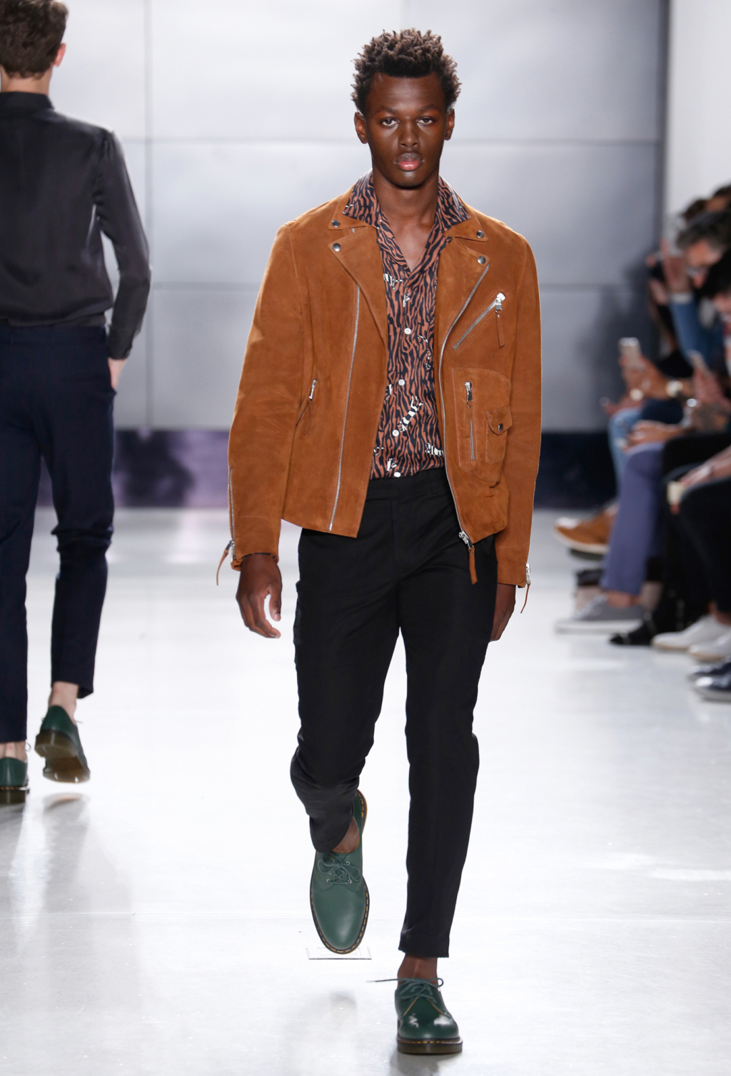 As an ode to the brand’s early days — they started out in neckwear — Eckstein styled the certain looks with his grandfather’s knit ties. The designers grounded the vintage references with of-the-now pieces including suede biker jackets and cotton bombers.