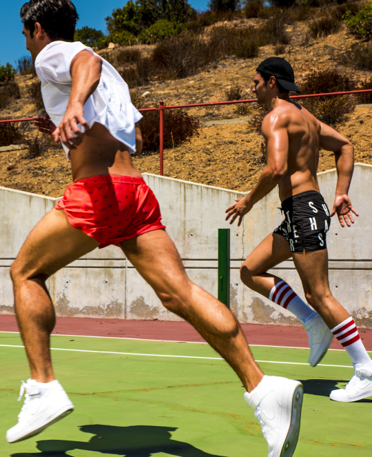 Model sensation Aaron Valenzuela is part of the lookbook. The collection is all about sportswear, focusing on outerwear and accessories, hoodies, tops, bottoms (uhmm??) jockstraps, swimwear, bags, included pins, and sweatshirts.