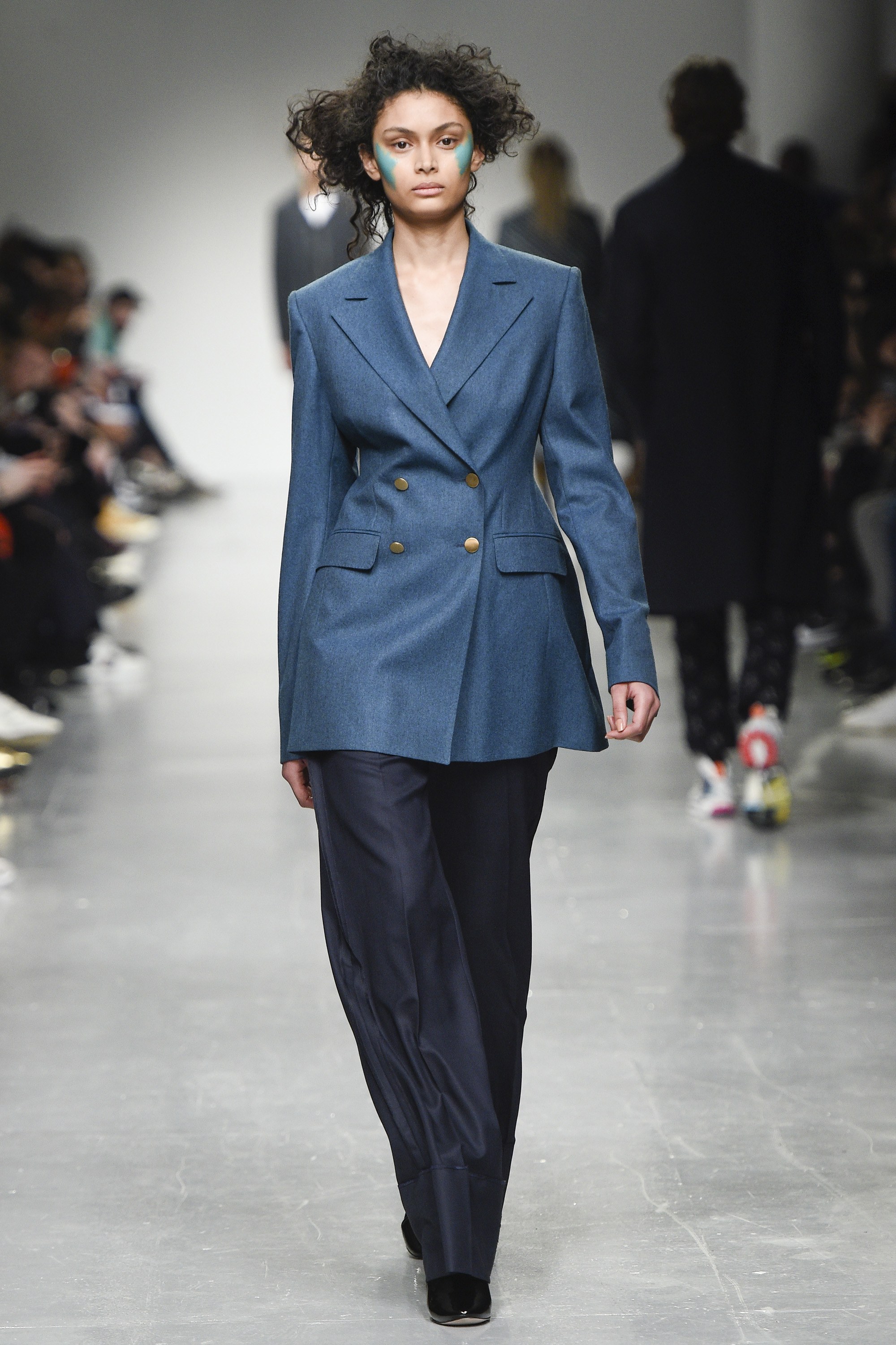 “Volume transitioning” was the operative catchphrase at Casely-Hayford this evening, where creative director Joe Casely-Hayford, and son Charlie, designed a collection in celebration of the former’s roughly 30 years in business. Also, news: Where last season saw a testing-the-waters introduction of womenswear, this time around the Casely-Hayfords launched a fully hashed out female line. It was shown at the same time as men’s, which is increasingly the norm here in London. /react-text