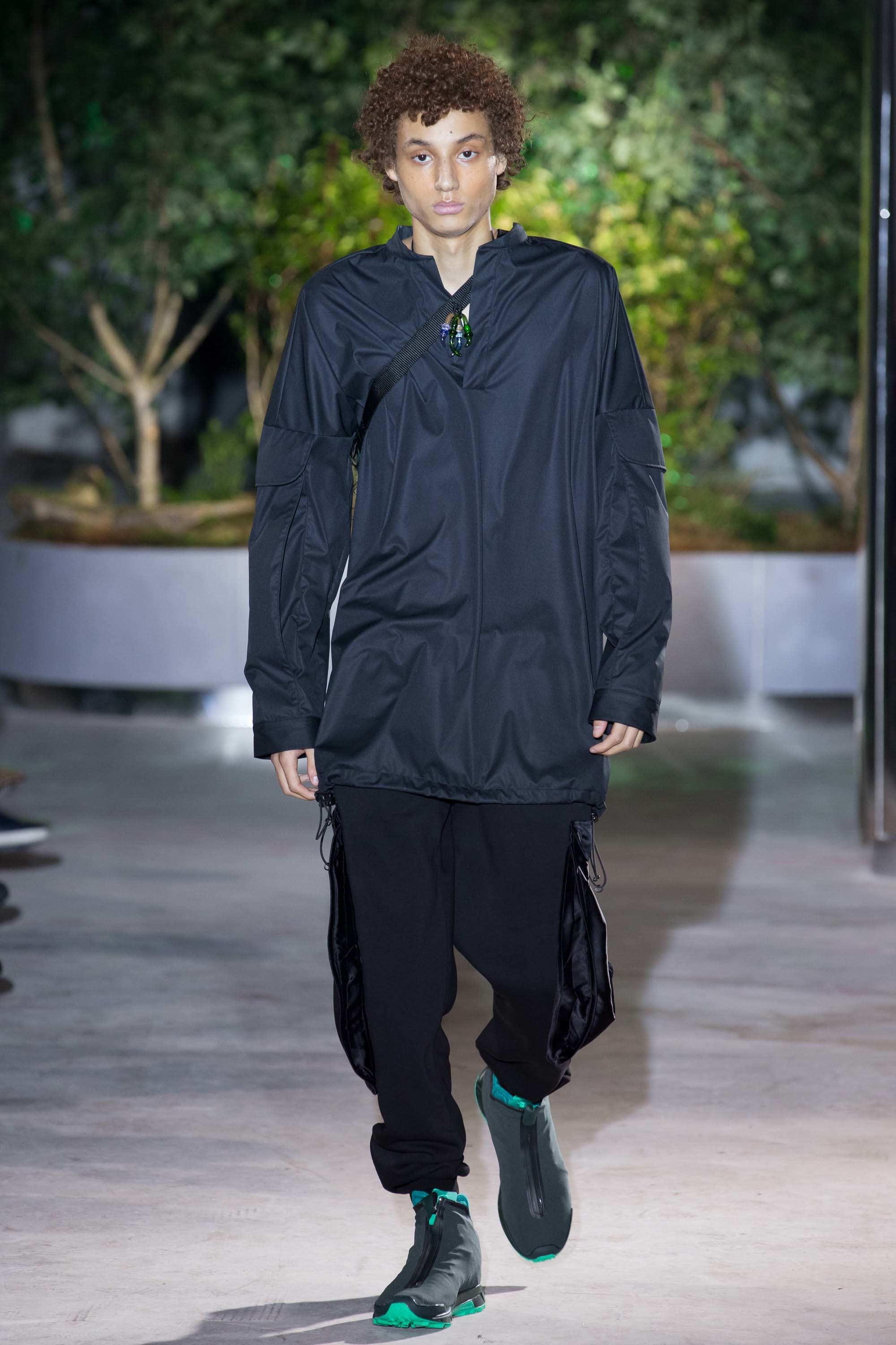 “It’s a little bit apocalyptic,” said Matthew Dainty, who codesigns Cottweiler with Ben Cottrell. (They are London-based, and have been selling commercially since 2012, though they worked on Cottweiler for years before while sharpening their skills at other labels.) “It was our commentary on new communities using consumerism as a basis for modeling, and then inserting artificial nature into the model.” Cottrell added: “People don’t know nature anymore. If you want a tree, don’t go to a shopping mall.”