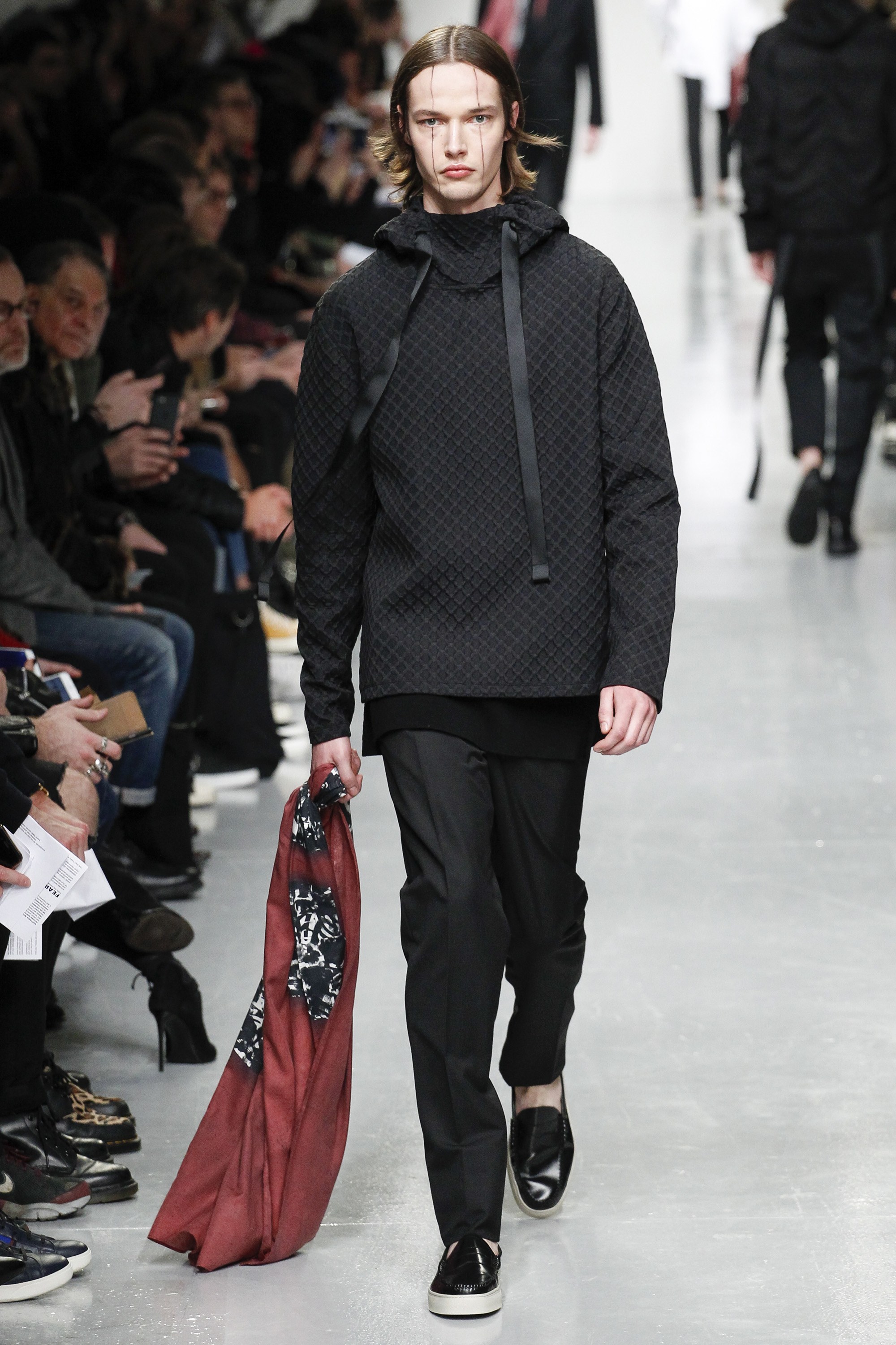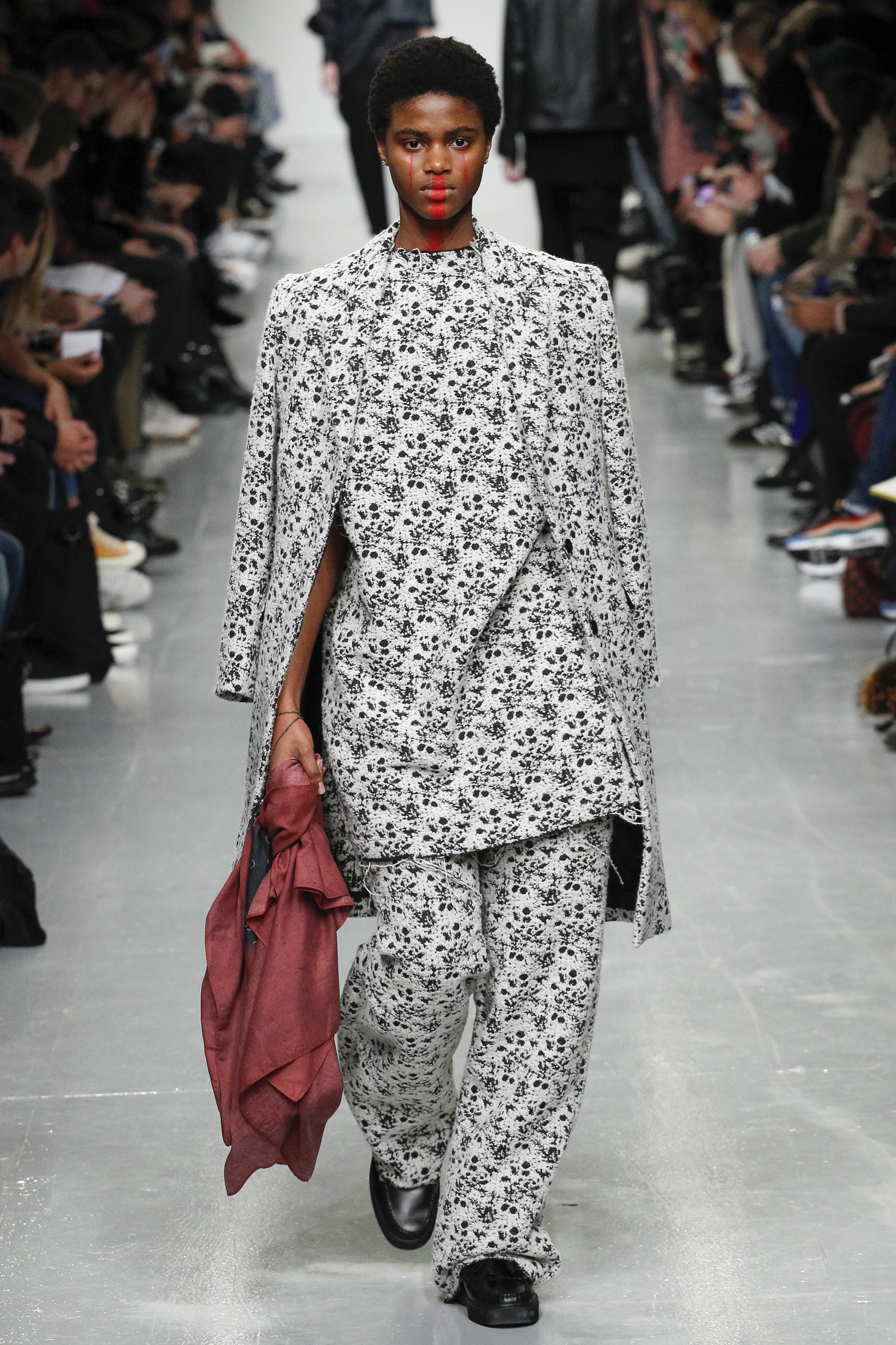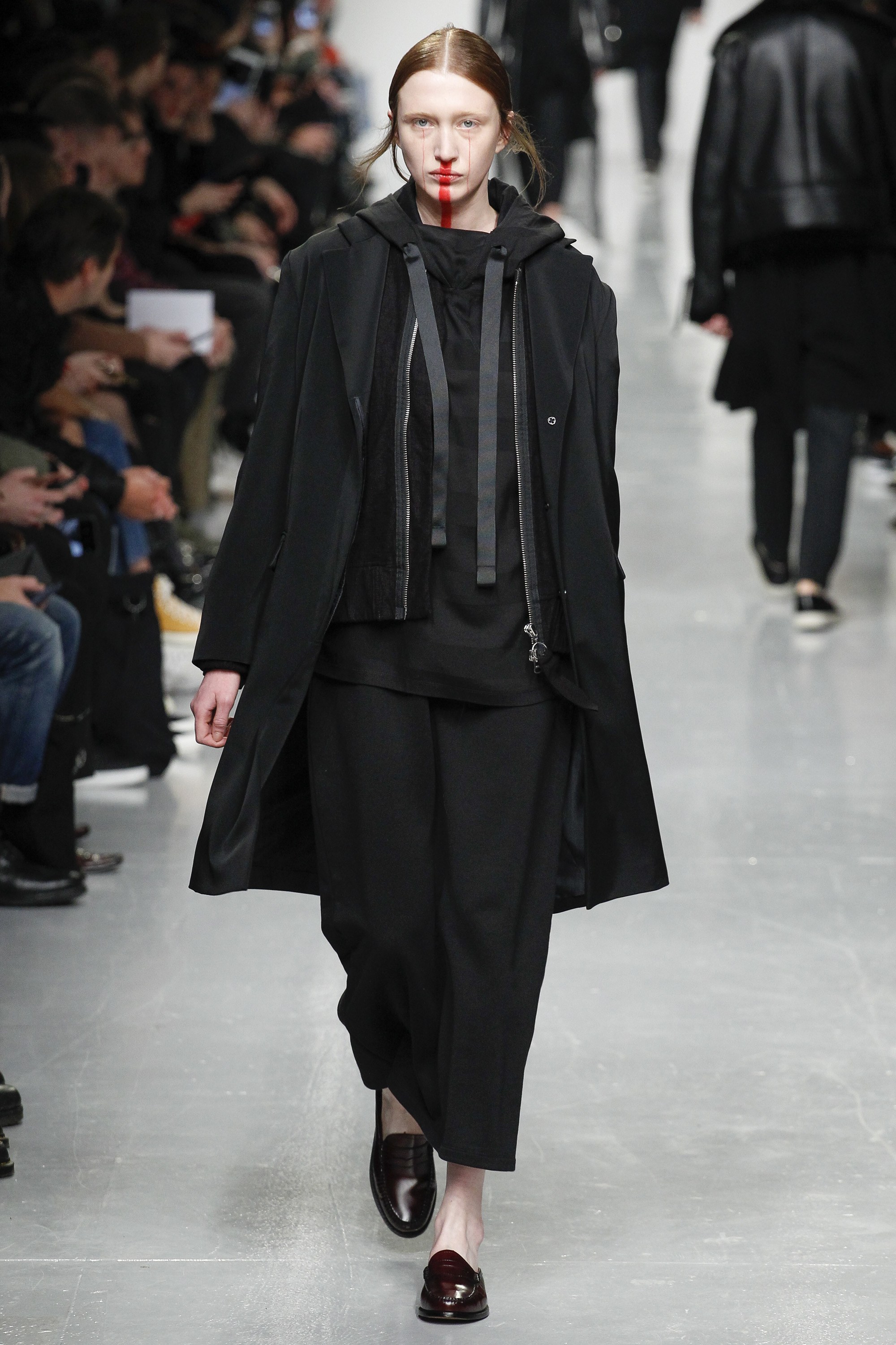 Matthew Miller and his ode to The Crow from 1994 Menswear collection in LFWM. Shouting in silence fear itself like a protest-runway show. Check down below dark garments, this is the new emo-line goes trendy but millennial group.