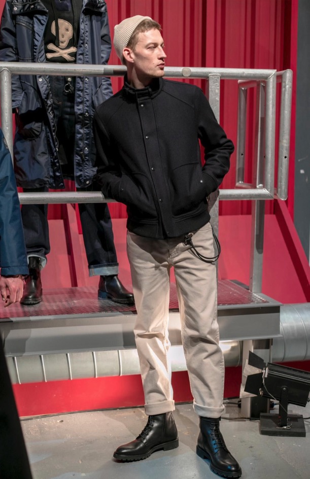 Belstaff Fall/Winter 2017 first dual gender fashion presentation is underway in London.