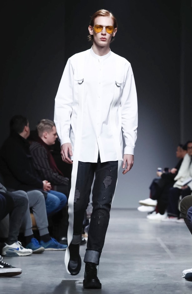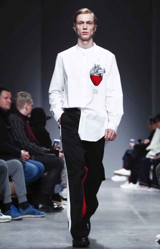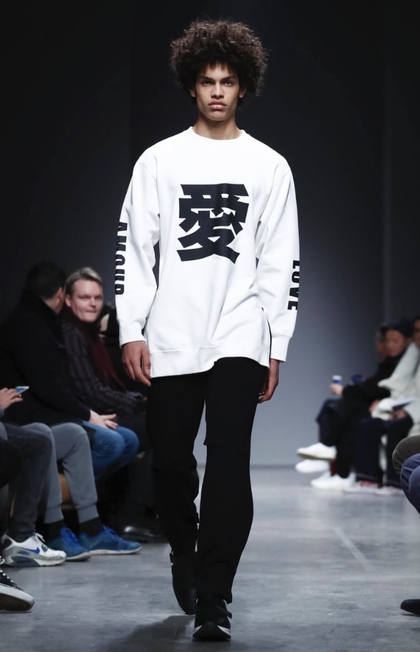 Ports 1961 Fall/Winter 2017 at Milan Fashion Week, giving us a dark sporty dynamic outfits with oversized sweatshirts printed with big Japanese signs, which means “Love” in kanji, also, we have trousers, long capes, white shirts, sweat pants, dark beautiful jackets and coats.