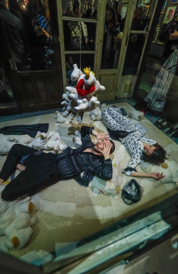 Marras captivated in new artwork collection involving models, actor, artist, fashionistas and even with skilt guys to celebrate a new way to be ‘Haunted’, the presentation was like a dream. Like a ‘Alice in Wonderland’.