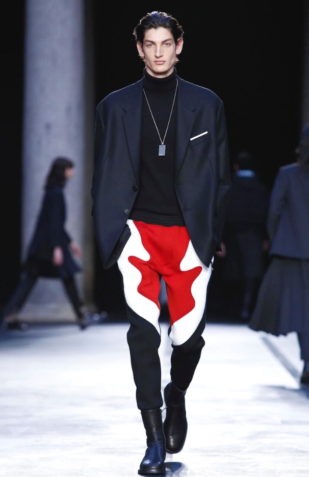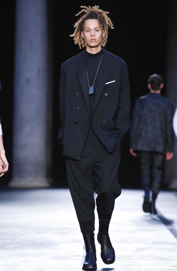Neil Barrett presents its Fall/Winter 2017 in Milan Fashion Week, show venue was in Palazzo del Senato, a very ethereal black and white collection, remembering 1993-1994 looks.