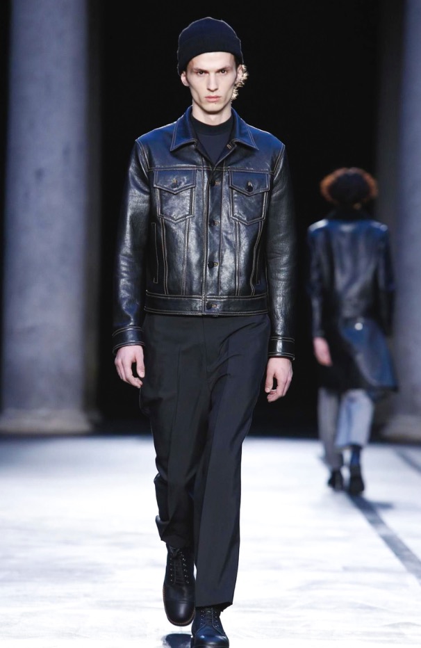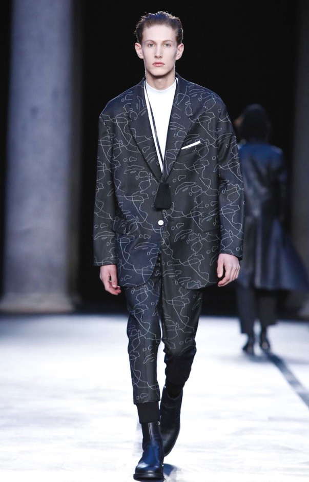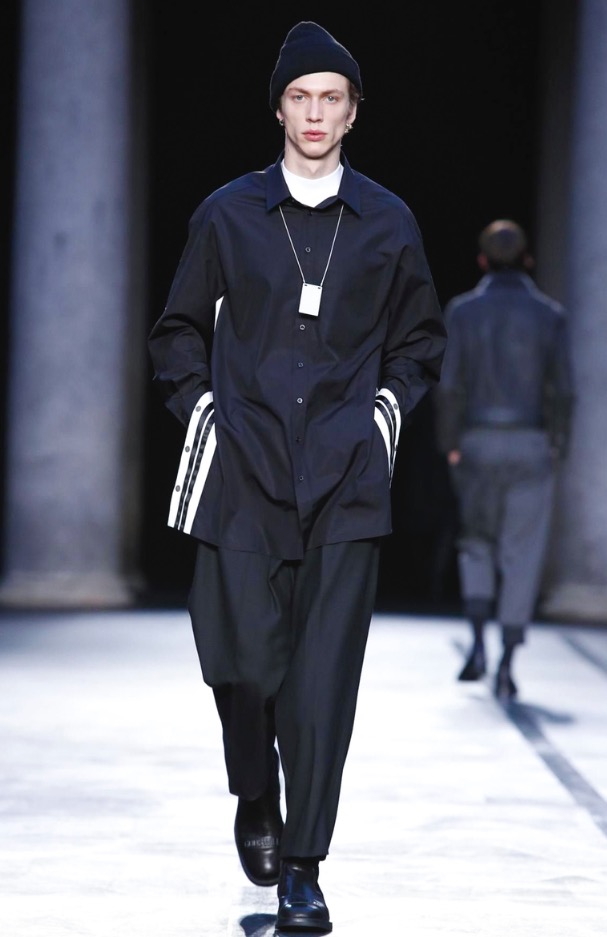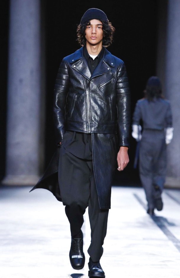 Neil Barrett presents its Fall/Winter 2017 in Milan Fashion Week, show venue was in Palazzo del Senato, a very ethereal black and white collection, remembering 1993-1994 looks.