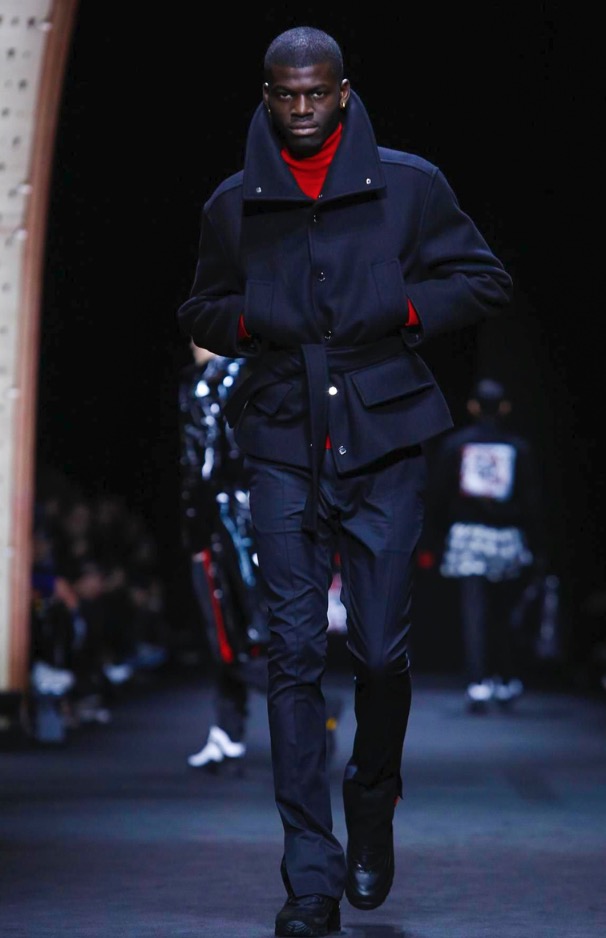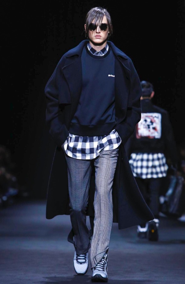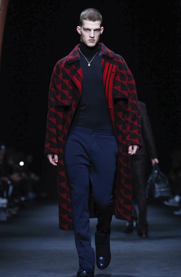 Sharply tailored coats are held by belts to dramatize the silhouette. Print unifies and blends the collection between formal and casual. Plaid shirts are rugged for the urban landscape.