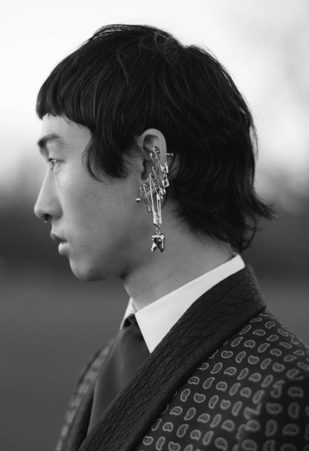 An all-over paisley print silk robe, an overcoat made in a jacquard inspired by antique rugs and gemstone rings all pay homage to the magnificent dandy. Two huge gold peacocks on a dark green background painted above Wilde’s bed in the room at L’Hotel on the Left Bank was where he spent his last days. They remain there to this day and are the central motif in this collection.