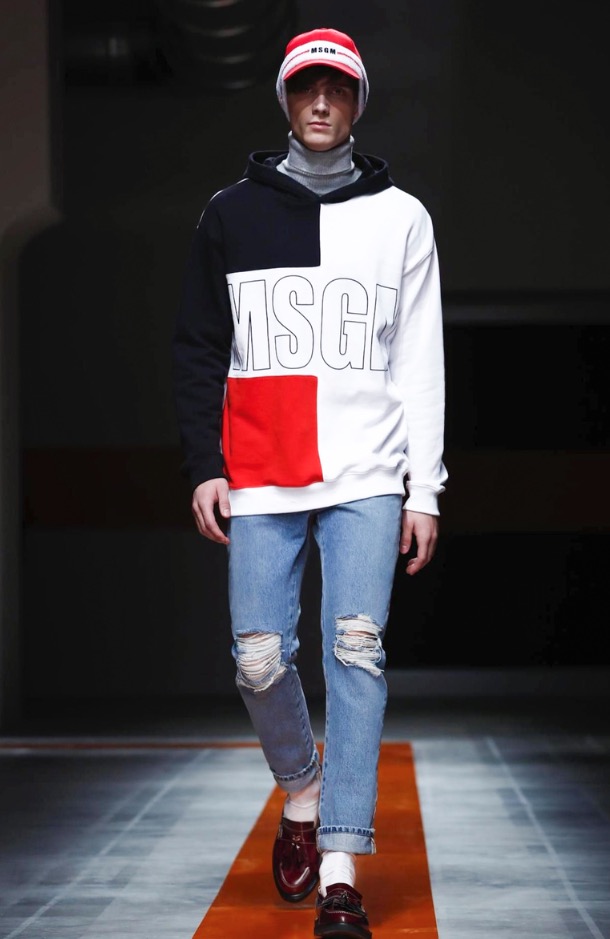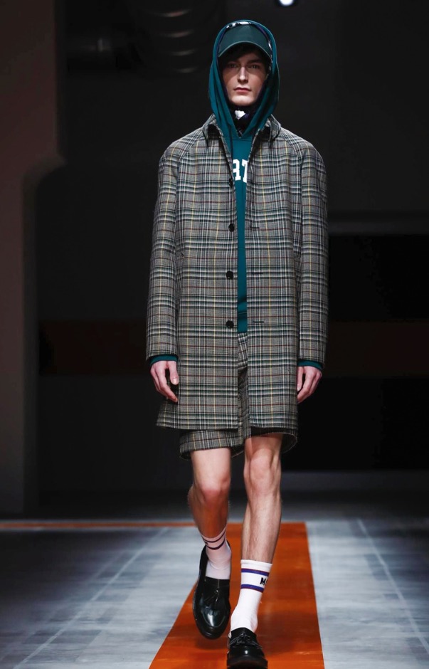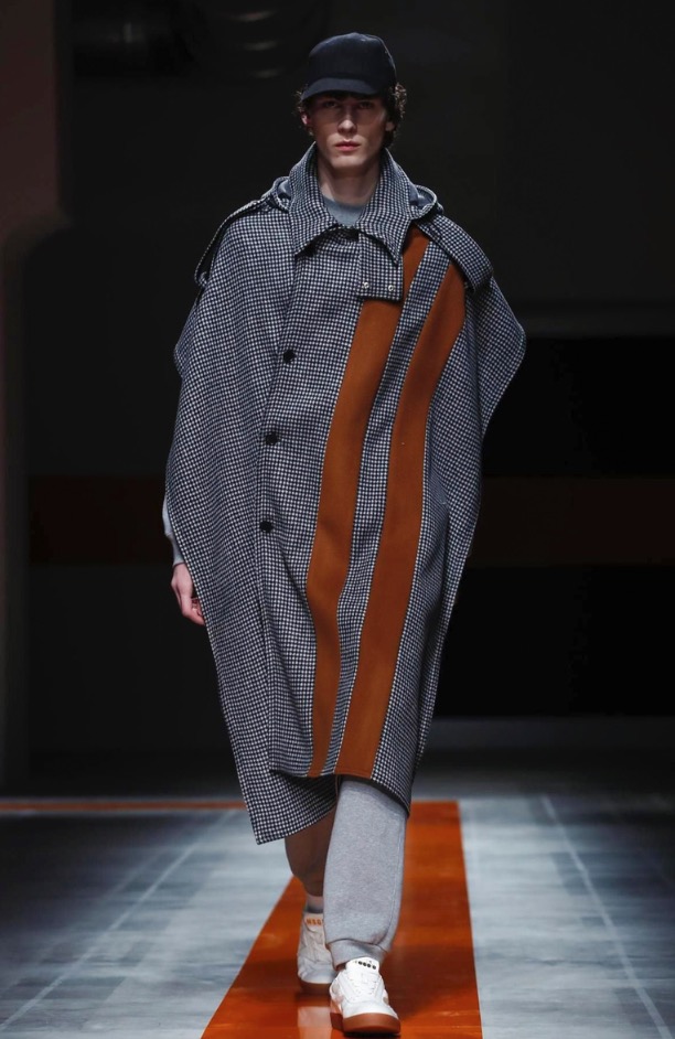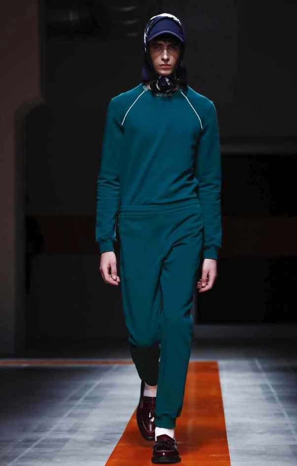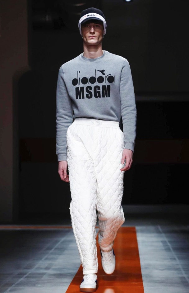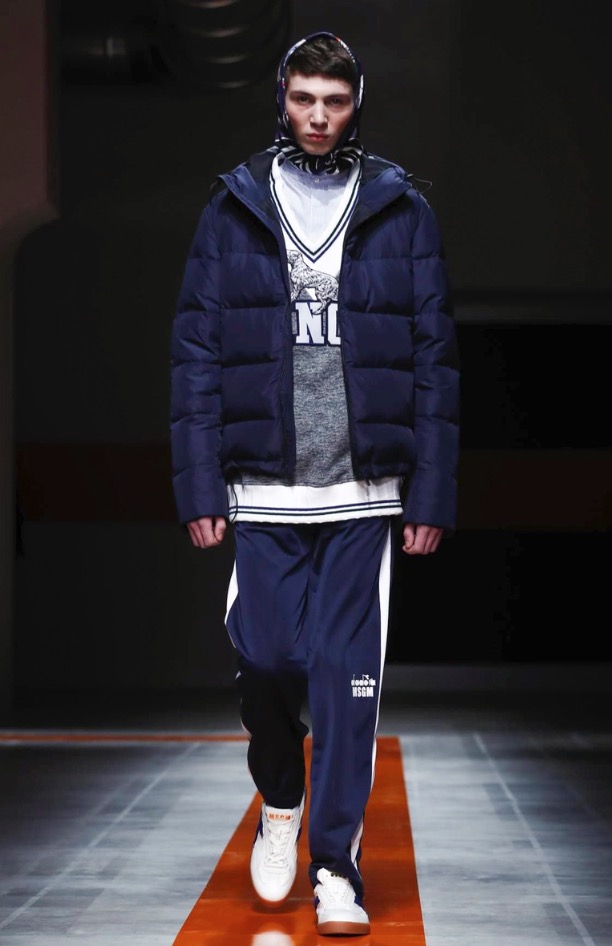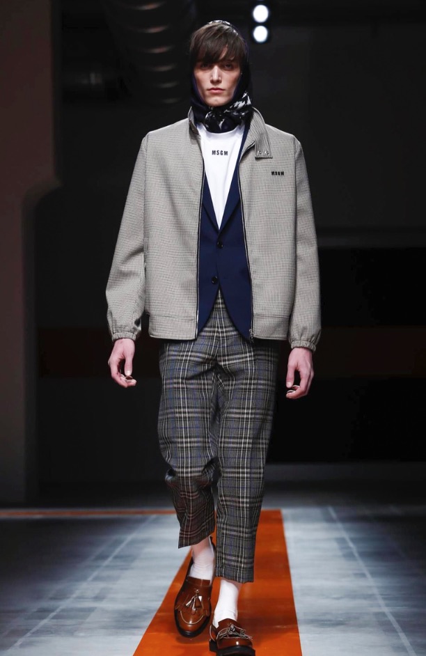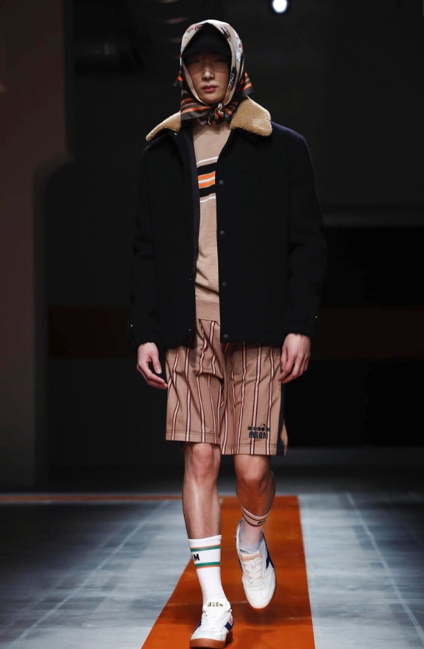 The brand’s founder and creative director took colorful, patterned jockeys’ silks and channeled them into checkerboard patterns for bombers and shearlings, the blue corduroy patchwork on a green quilted vest, and randomly-placed geometric patches on puffers.