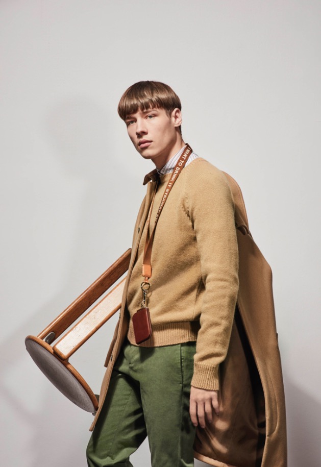 Tweed coats, a thick beige ski sweater with a scarf motif, a checked skater shirt, a cream denim jacket, corduroy pants, a Prince of Wales check oxford coat — all were part of this understated celebratory lexicon.