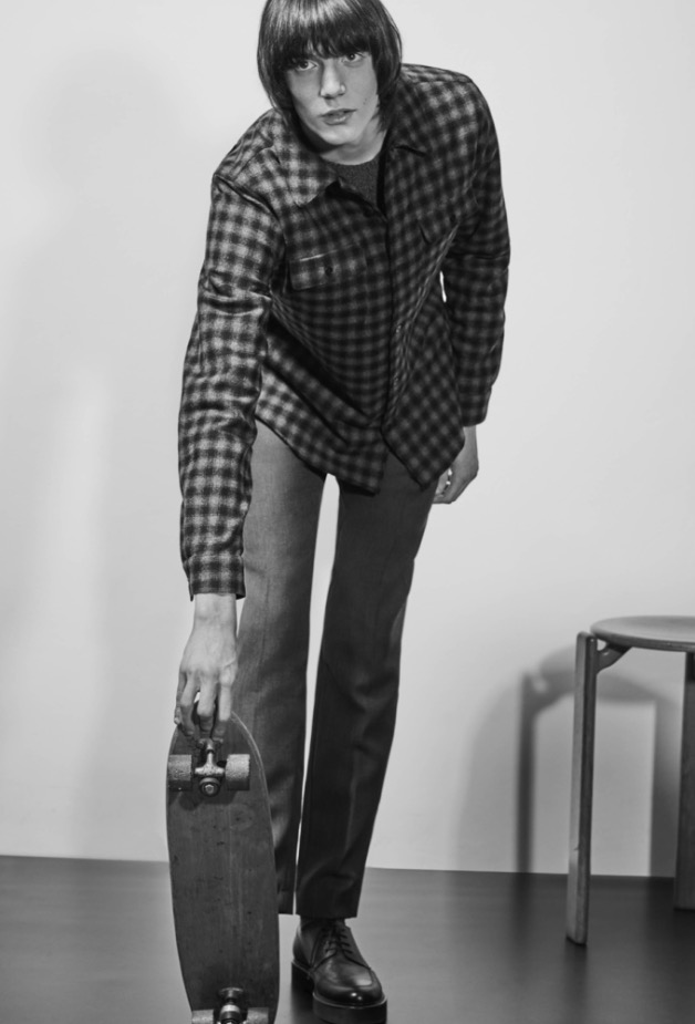Tweed coats, a thick beige ski sweater with a scarf motif, a checked skater shirt, a cream denim jacket, corduroy pants, a Prince of Wales check oxford coat — all were part of this understated celebratory lexicon.