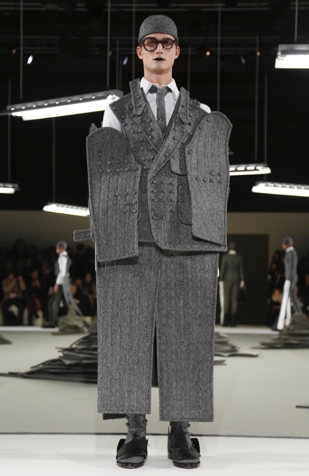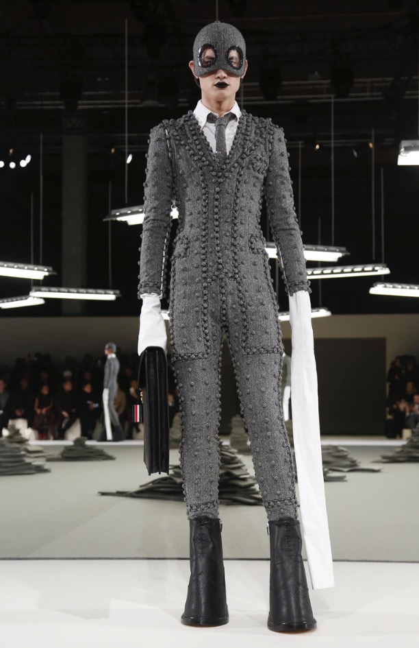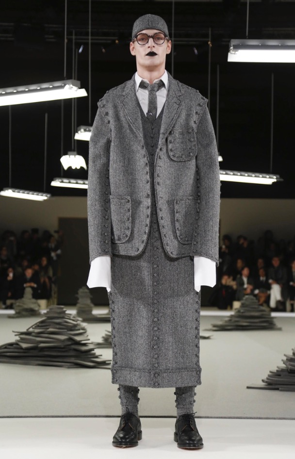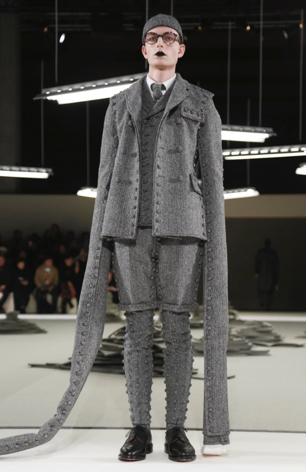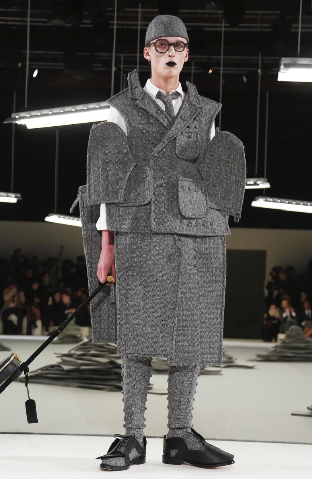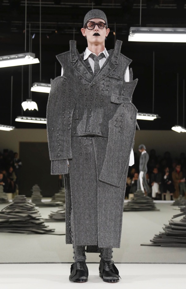 Nearly the latest show at Porte de la Villete, Slenderman for the Thom Browne show in Paris Fashion Week, shows off pattern-play in an extraordinary fashion show. collaborating with fashion hats by Stephen Jones.