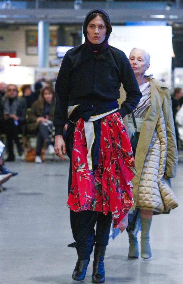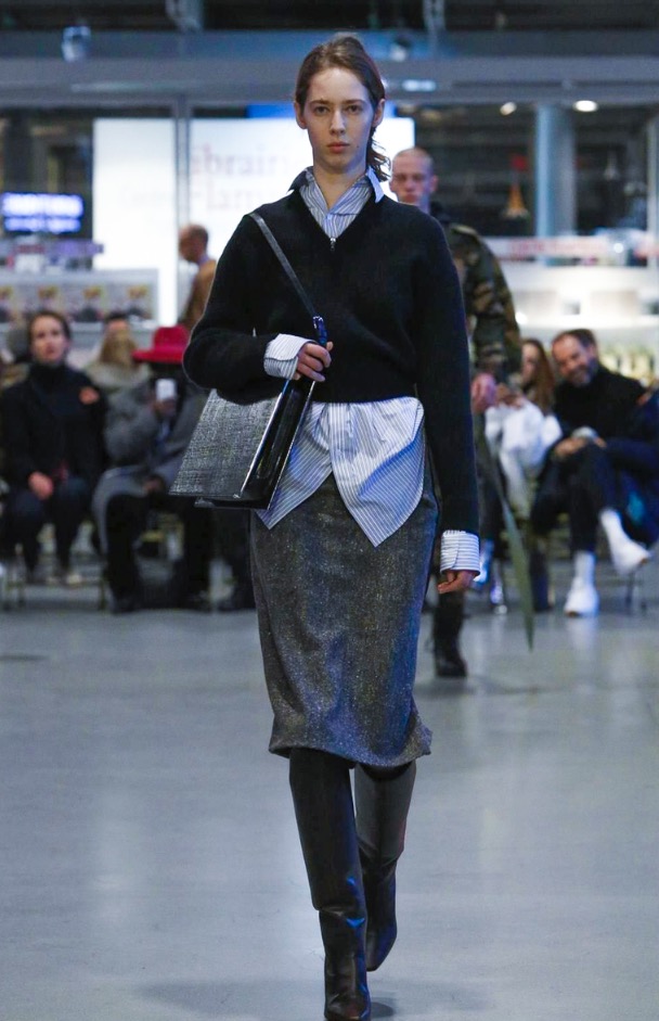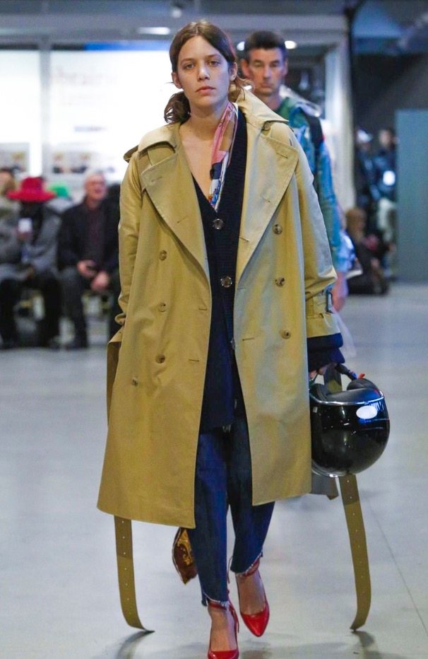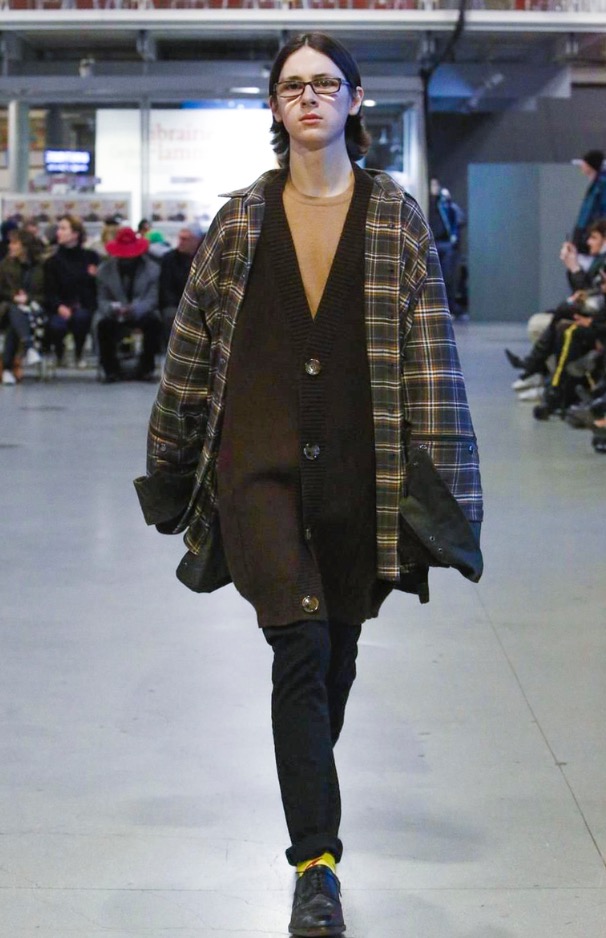 So, yes, while these looks did epitomise their prescribed personalities, as they wandered past you’d see that the denim jacket was actually two sewn together, one inside-out and hugging the back, it’s front as usual. And classic macs, something of a Vetements staple, were festooned with scarves. Product pieces were reworked. It wasn’t about inventing something new, but more about the casting – so this was a diverse catwalk, from “nerd” to “granny” and each looking as stylish as the other, but very much a la Vetements, which means a healthy dose of attitude and intimidation. But it worked well to show the clothes on this motley crew because Vetements, despite its high fashion selling price, has always been anchored in a relevance and reality; the clothes designed for and worn by those that make and hang out with the brand. And that can be anyone. The “neighbour” never looked so cool – who knew he had it in him?! Exactly.