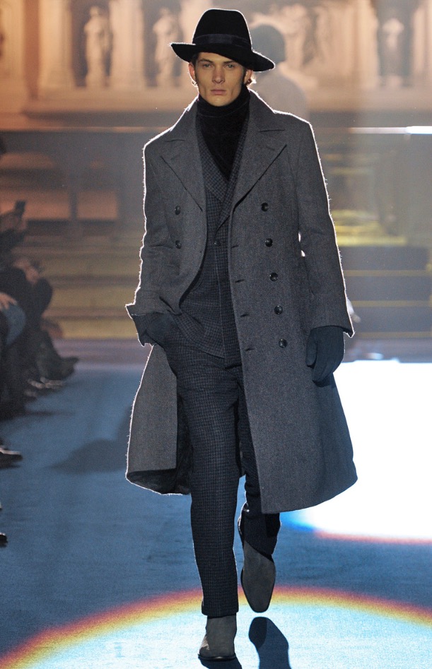 Starring worldwide trending top models like Sean O’Pry, Chad White, Matthew Terry, Garrett Neff, RJ Rogenski, Tobias Sorensen,Vitor Melo, Walter Savage, Bertold Zahoran, sensational faces like James Barrett and oldies but gooddies like Alex Lundqvist all wearing in black , dark grey, dark blues, some long coats in clean colors bringing back wide wing hats, faux leather, trousers and including some knitwear tops.
