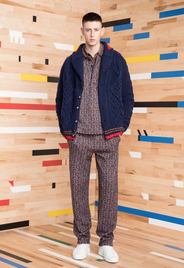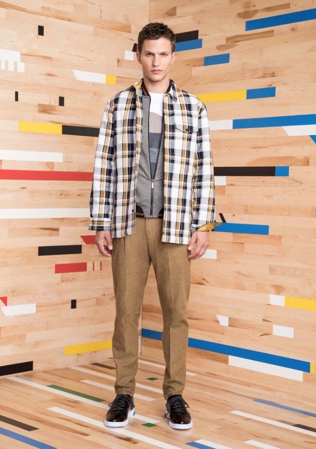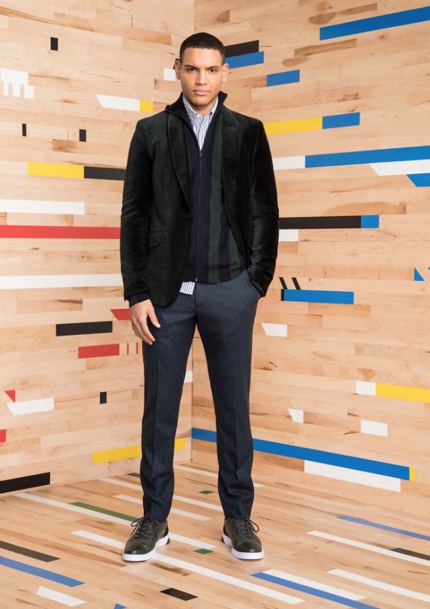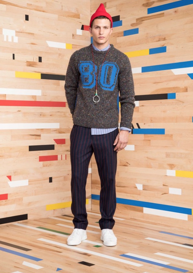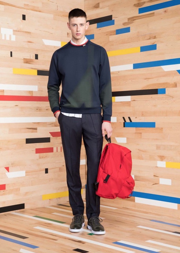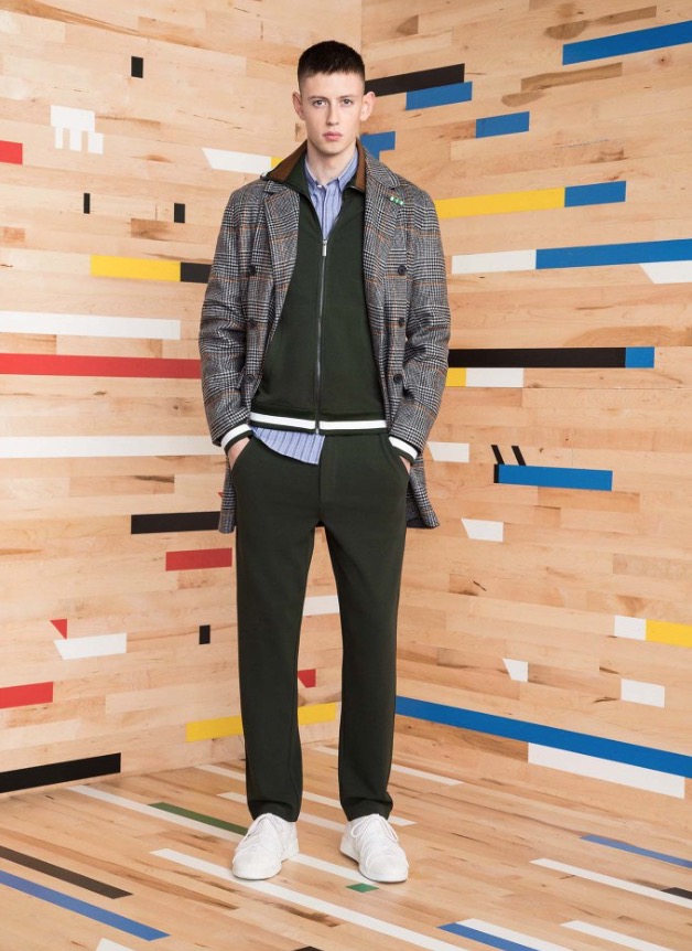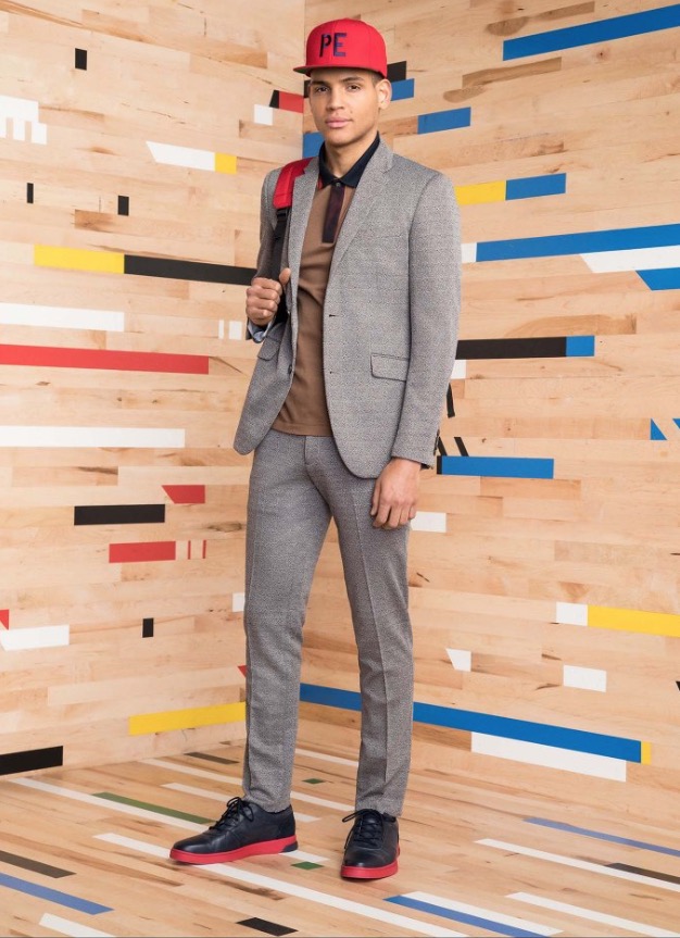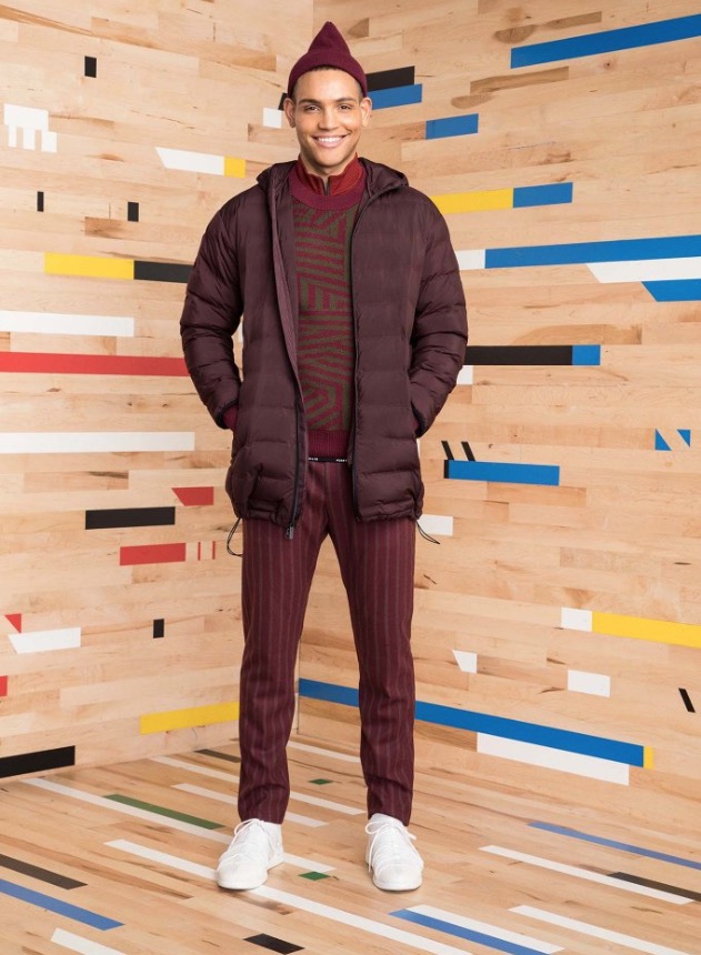 These special pieces will be focused on PE Schooled, he said, noting that the name is intended to invoke both the brand name as well as physical education. No surprise then that the collection incorporates a lot of active and technical influences. A pinstripe “suit,” for example, looks more like a tracksuit with a stripe running up the side of the pant, a zip-up jacket and matching cardigan.