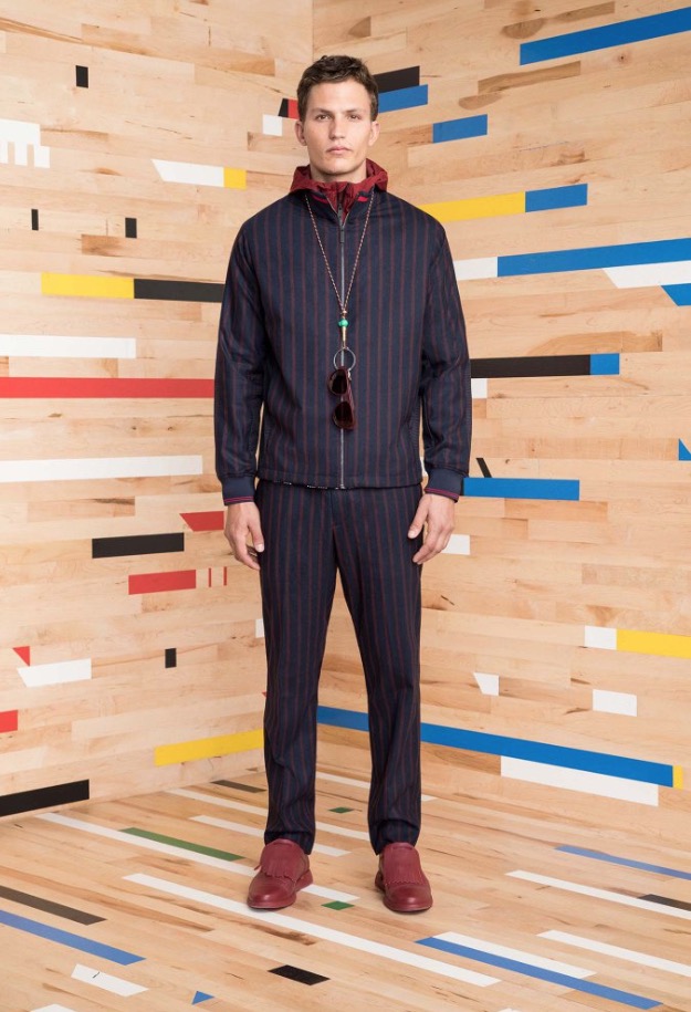 These special pieces will be focused on PE Schooled, he said, noting that the name is intended to invoke both the brand name as well as physical education. No surprise then that the collection incorporates a lot of active and technical influences. A pinstripe “suit,” for example, looks more like a tracksuit with a stripe running up the side of the pant, a zip-up jacket and matching cardigan.