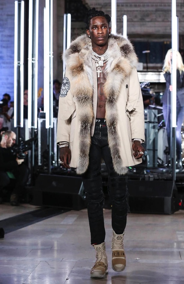 Perhaps the biggest stunt of all, though, was the show’s casting. In addition to dozens of Victoria’s Secret regulars and top Insta-kids like Anwar Hadid, Cami Morrone and Sofia Richie, he assembled a motley crew of models that included Fall Out Boy’s Pete Wentz, fashion photographer Sebastian Faena, New England Patriot Danny Amandola and a trio of rappers: Young Thug, Fetty Wap and Desiigner. However, the most egregious play for attention was the model who opened the show: Jeremy Meeks, more commonly known as the “hot felon” whose dreamy mugshot went viral in 2016, made his runway debut on Monday night, marking the very first fashion week event he’s ever participated in.