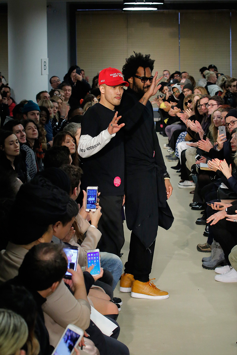 Well before the presidential election, the two established themselves as politically minded designers eager to use the runway as a platform for their views along with their clothes. Here, their inspiration, or perhaps, more accurately, their creative motivation, was a consideration of borders. “We just started talking about these man-made constructs to keep people from each other, at the same time envisioning this world where if you’re a human being, you are a citizen of the world,” Chow said.