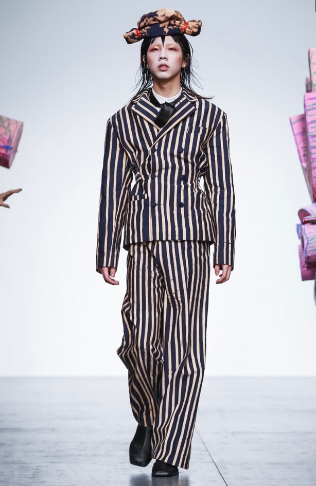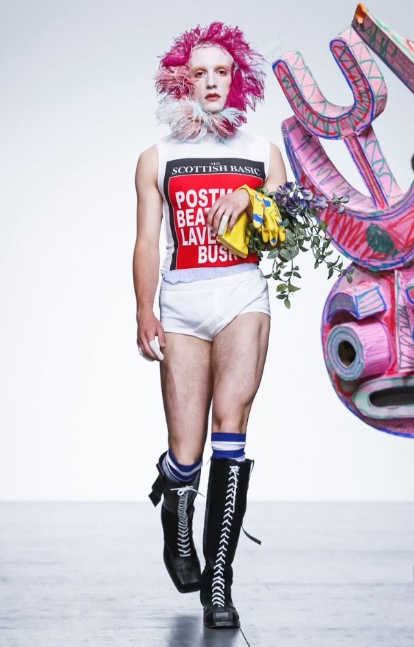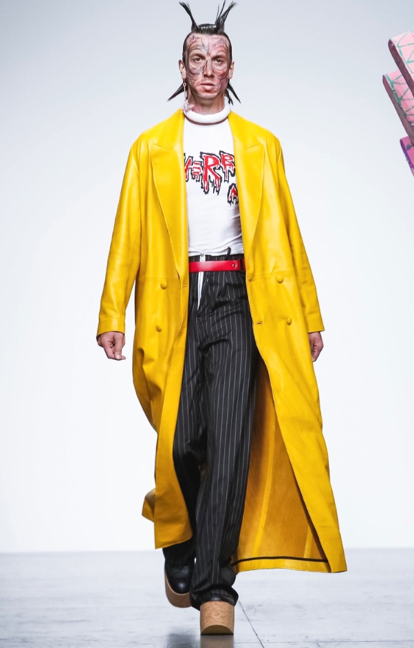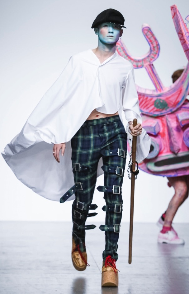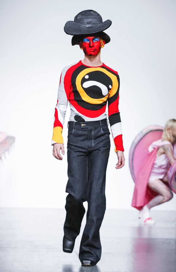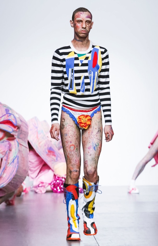 Now LOVERBOY brings his own joy to London Fashion Week: Men’s with a extravaganza theatre cirq-parade. The wonderful world of LOVERBOY is full of fantasy, childhood memories, sissy characters, authority figures, like a stoned “Alice Wonderland”.