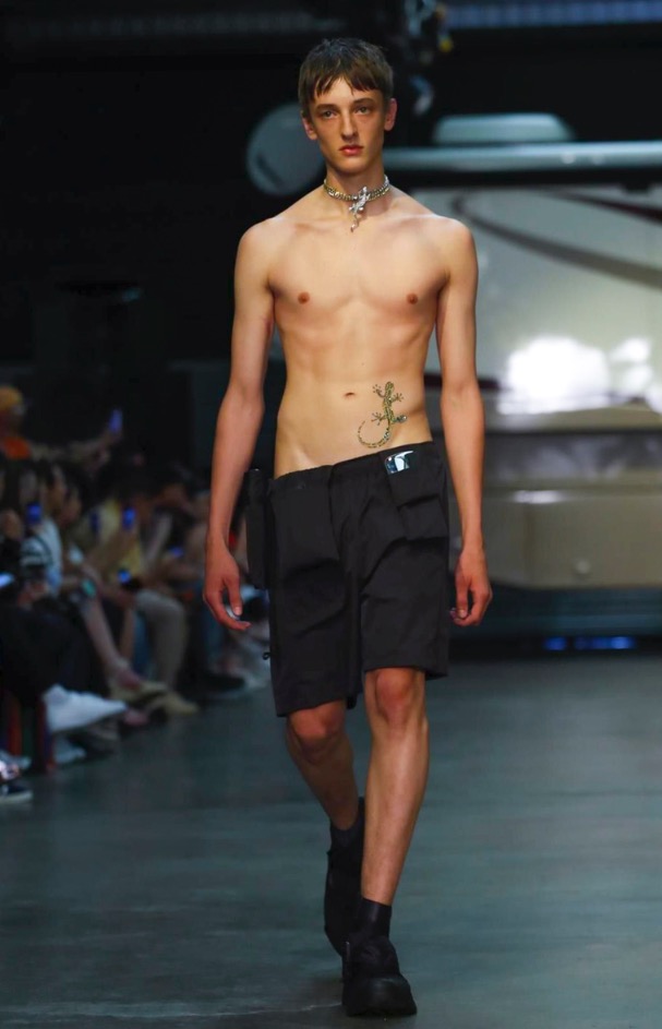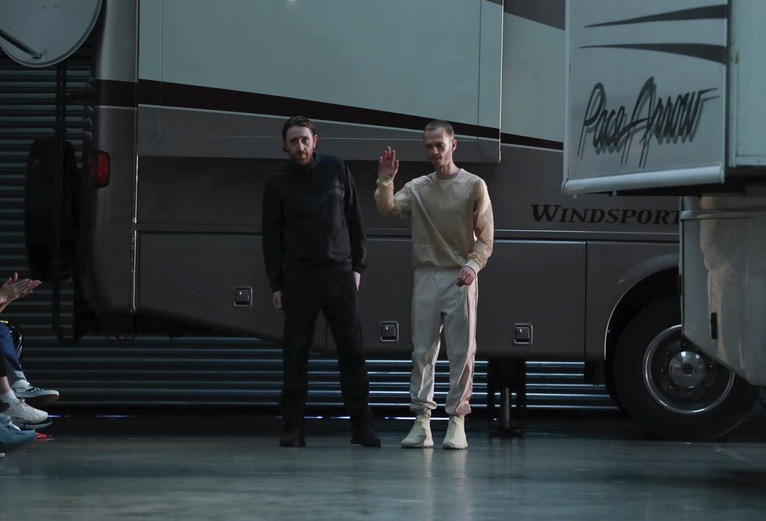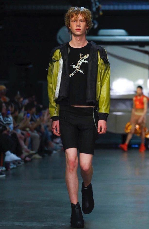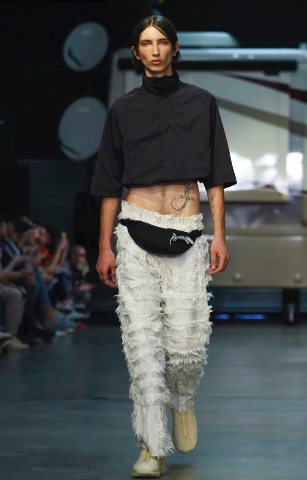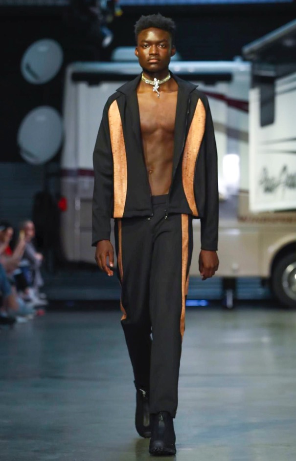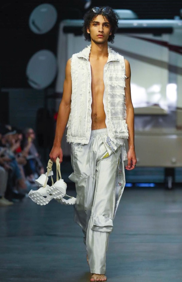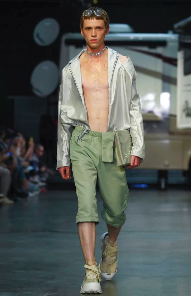 Cottweiler designers Matthew Dainty and Ben Cottrell looked to the optimism and escapism of off-grid desert communities for spring and created a mobile home setting with models strutting around caravans.