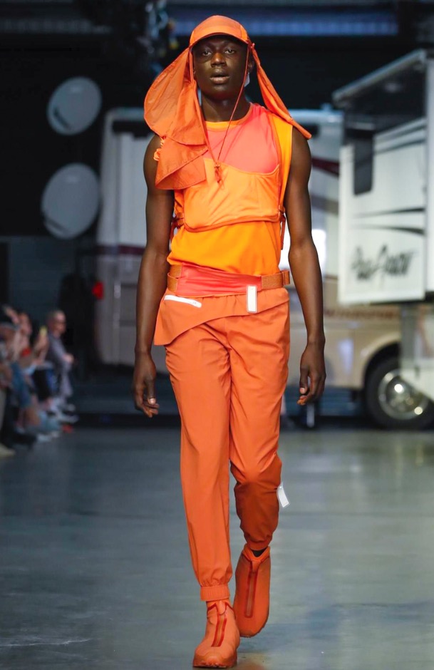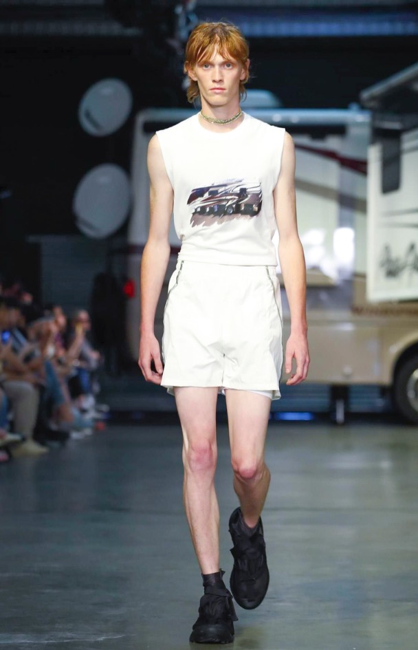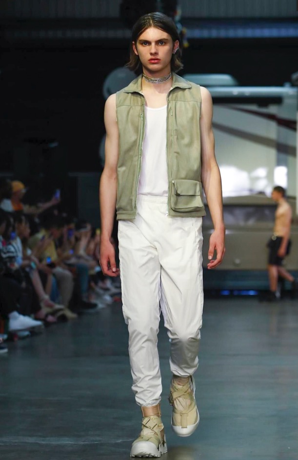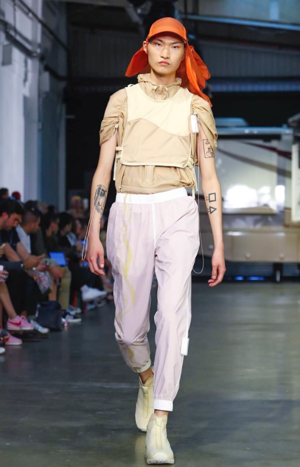 This helped update their signature track suit silhouette, yielding a contemporary range. They worked in lightweight hoodies, a poncho, shorts, T-shirts and track pants in desert hues of sand, sage, ivory and a deep lava.