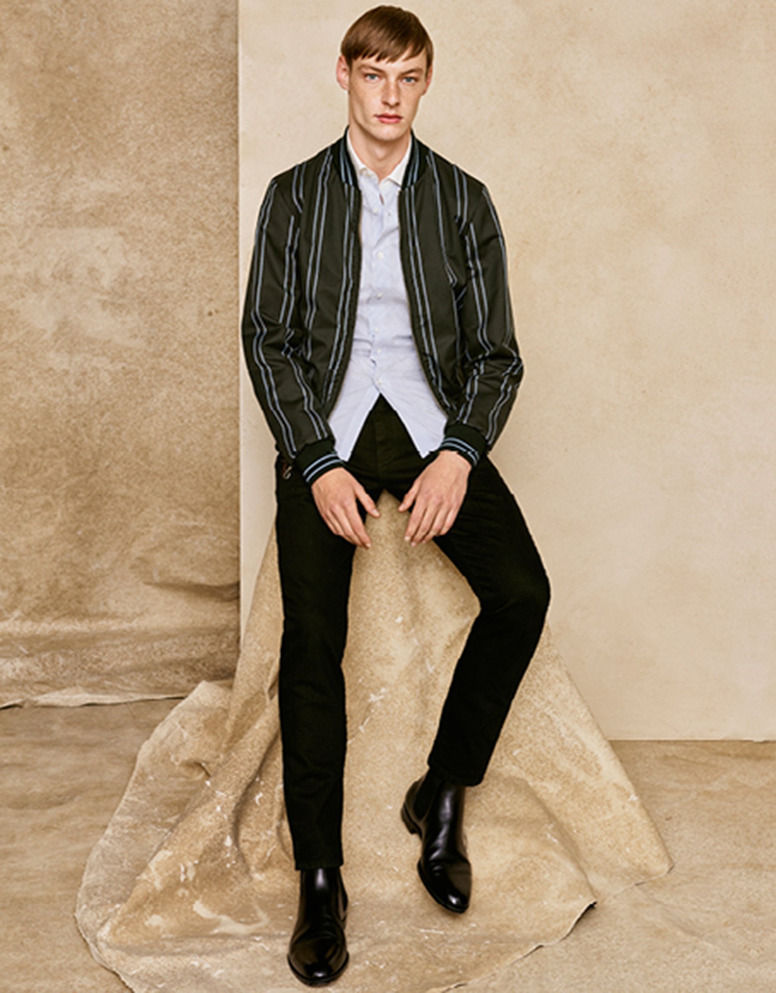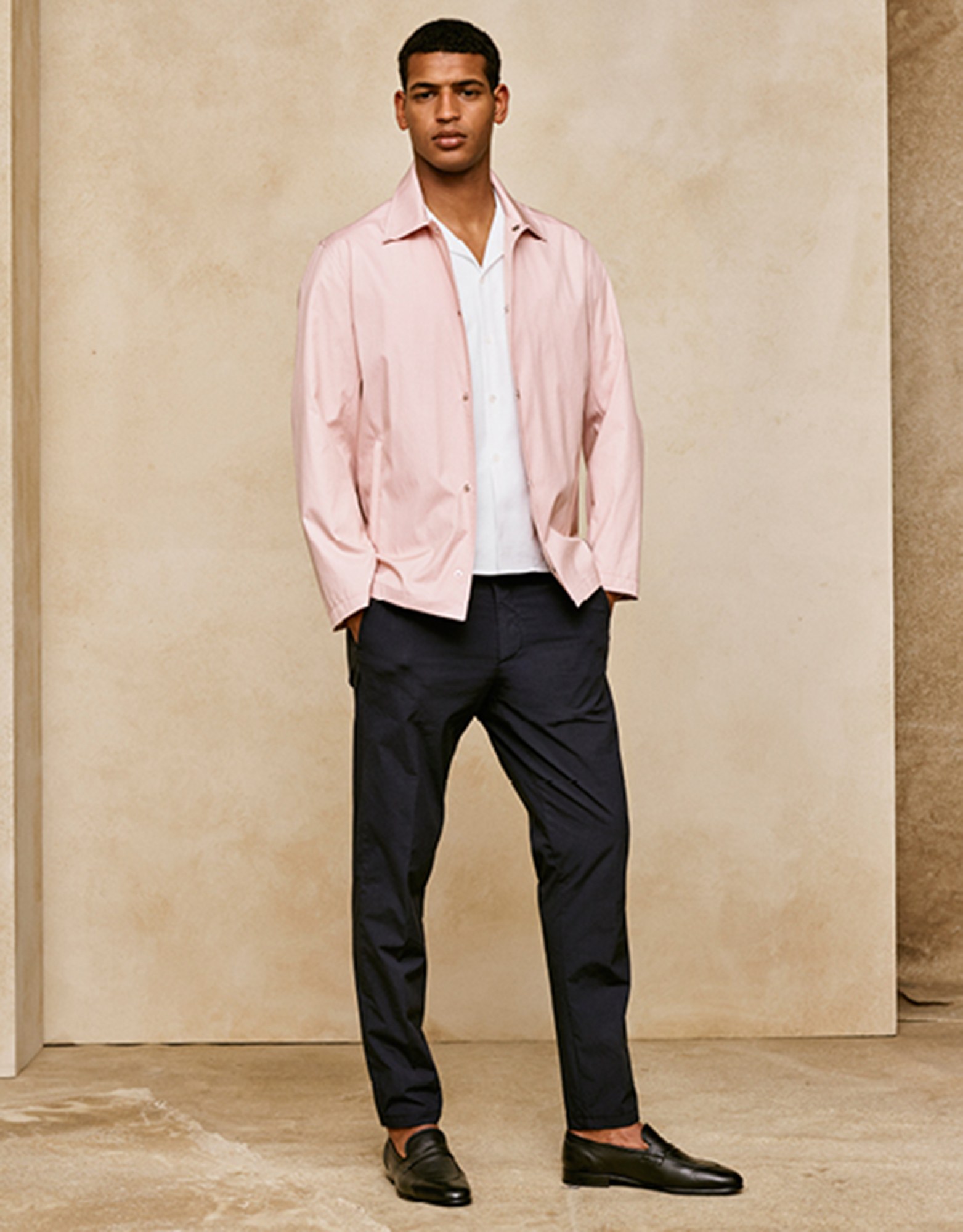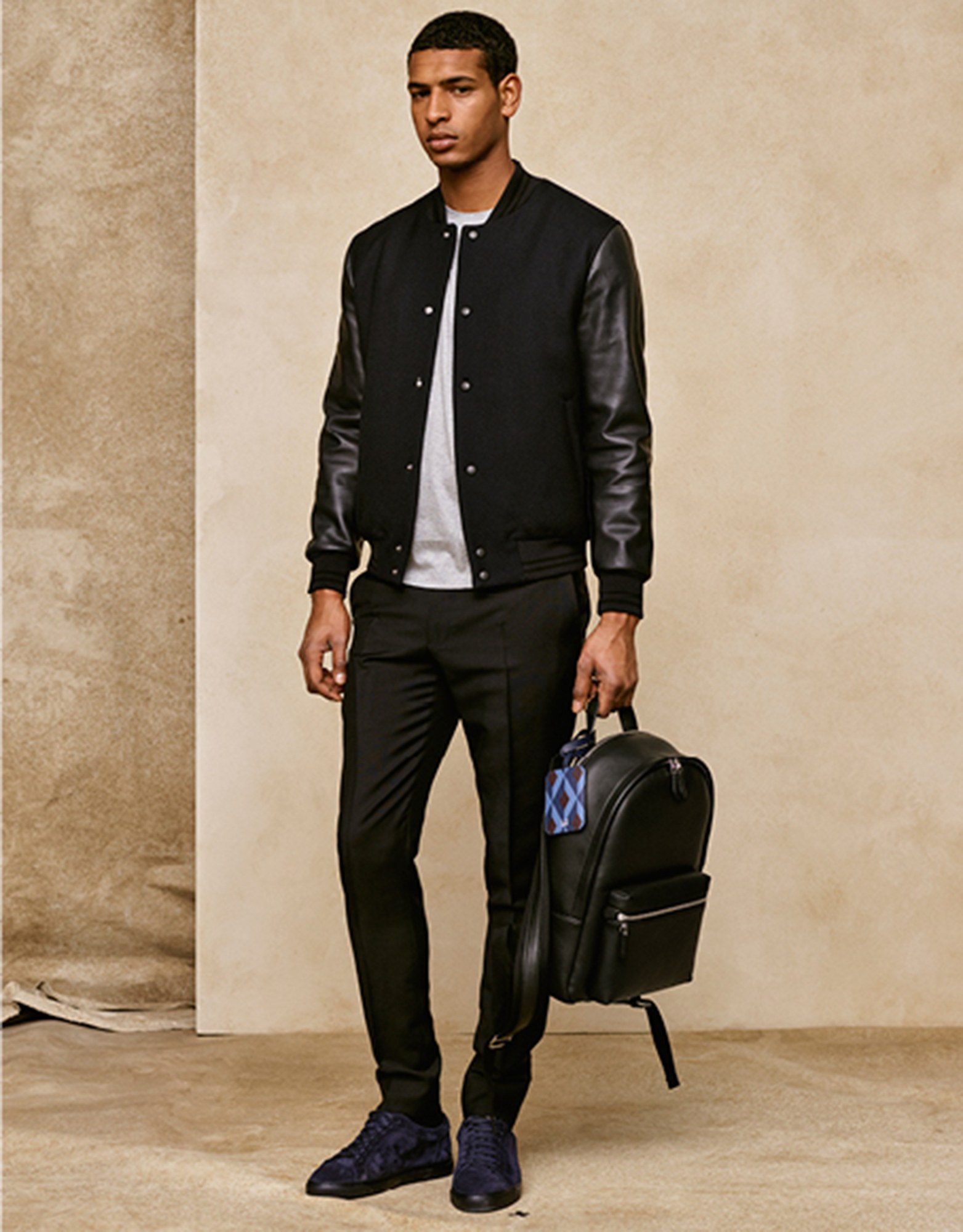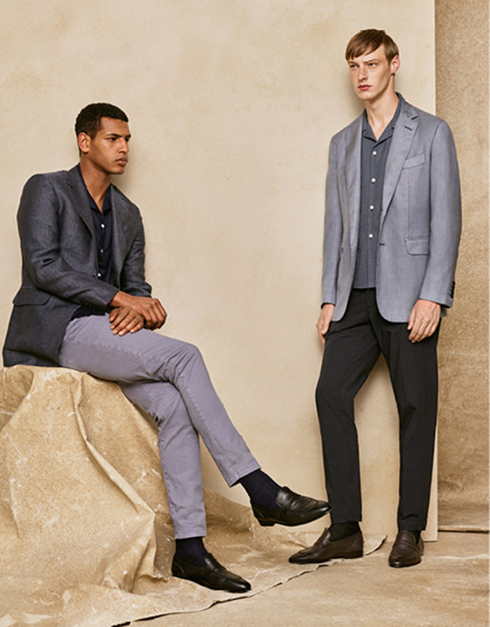 Both Weston and Maag separately pointed to one piece in particular as they sketched their Dunhill manifesto: It was a reversible bomber shown with a Fox Brothers boating stripe worn outside, but which could be flipped to a more contemporary khaki synthetic. Weston said, “The trap you can fall into is when you start to become too nostalgic. So here, for me, it’s not about having a club blazer with a crest on it, but something like this, which is more relevant.” New sneakers, a new mid-narrow jean, and a new casual deportment in the unfussy styling added to the sense of a Dunhill more—at least, apparently—at ease. Strong and stable stuff.