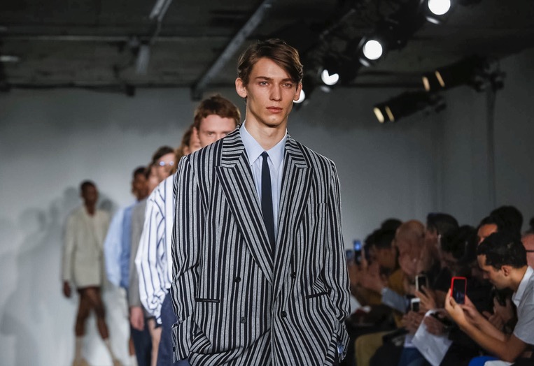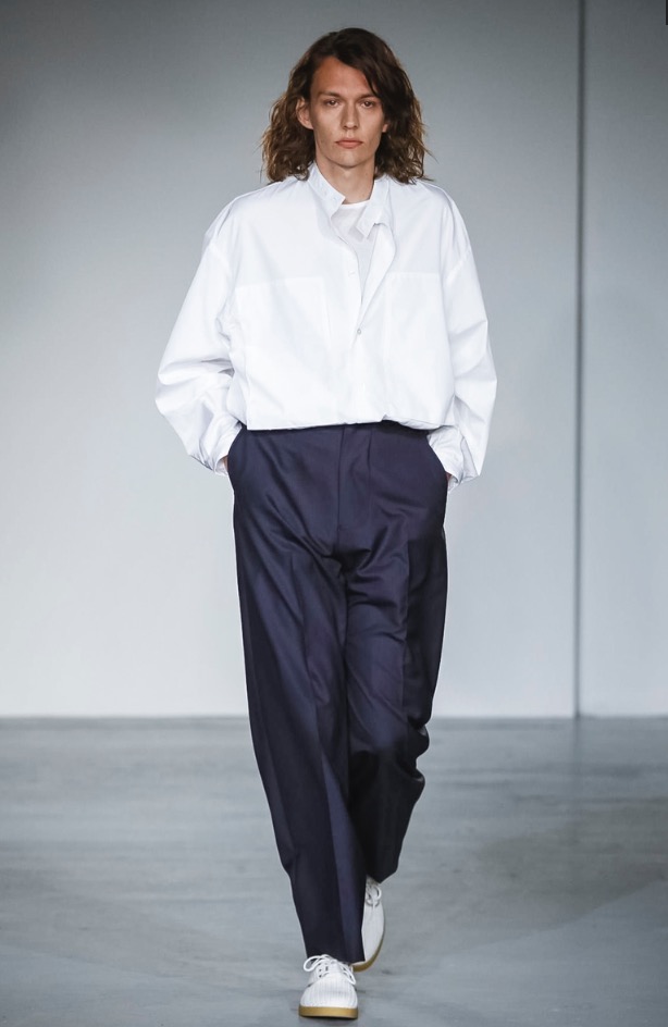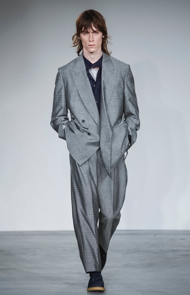 Patrick Grant said he wanted to make some “really beautiful…non-shouty clothes” for this collection, which was filled with breezy yet sharply-cut pieces that mined an early Eighties mood.