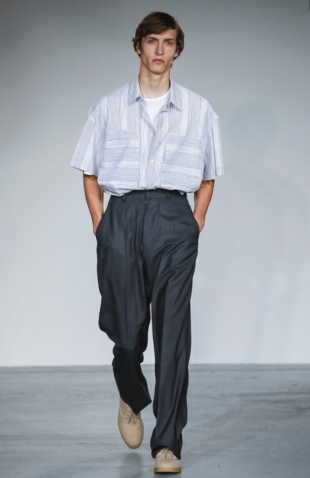 Patrick Grant said he wanted to make some “really beautiful…non-shouty clothes” for this collection, which was filled with breezy yet sharply-cut pieces that mined an early Eighties mood.