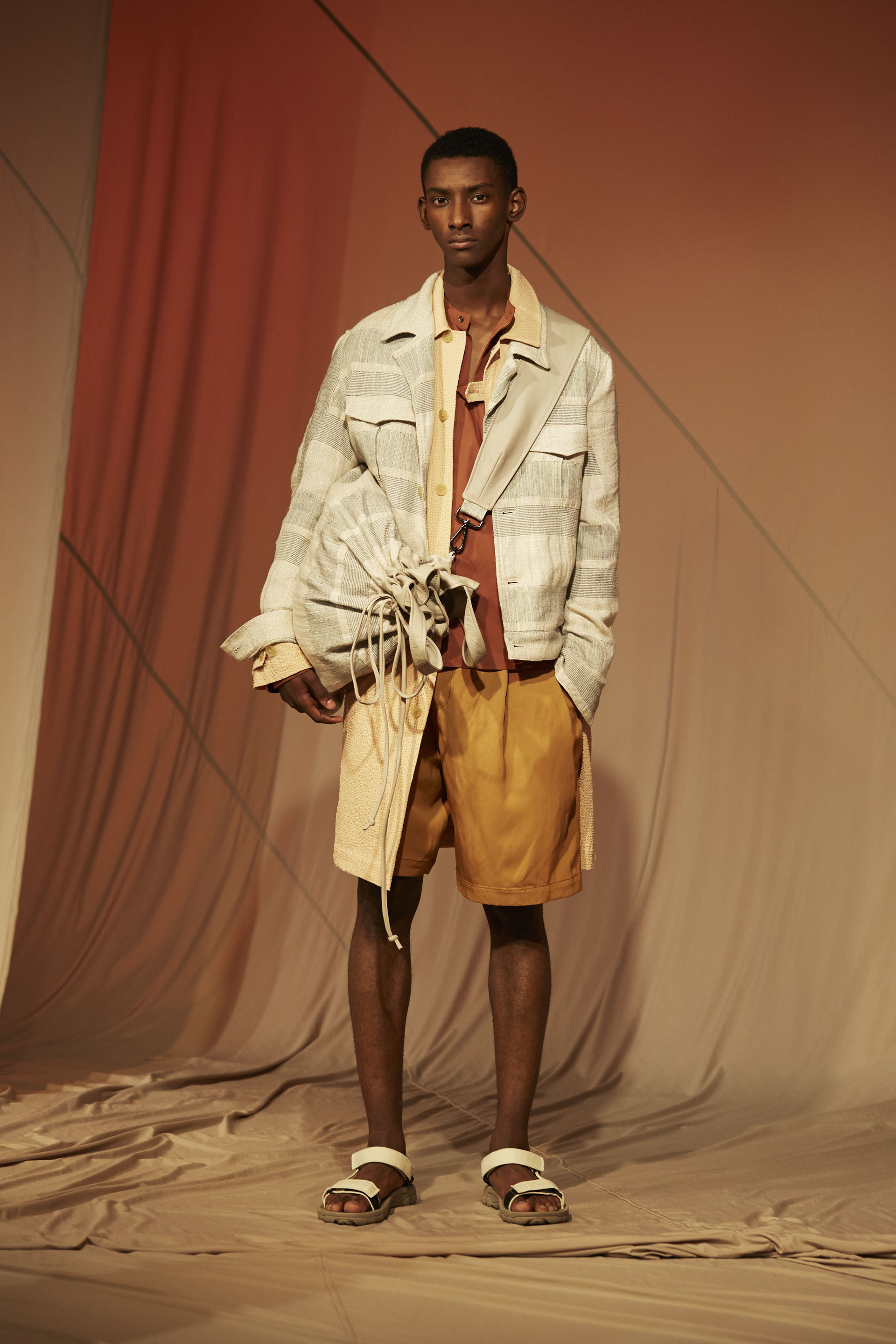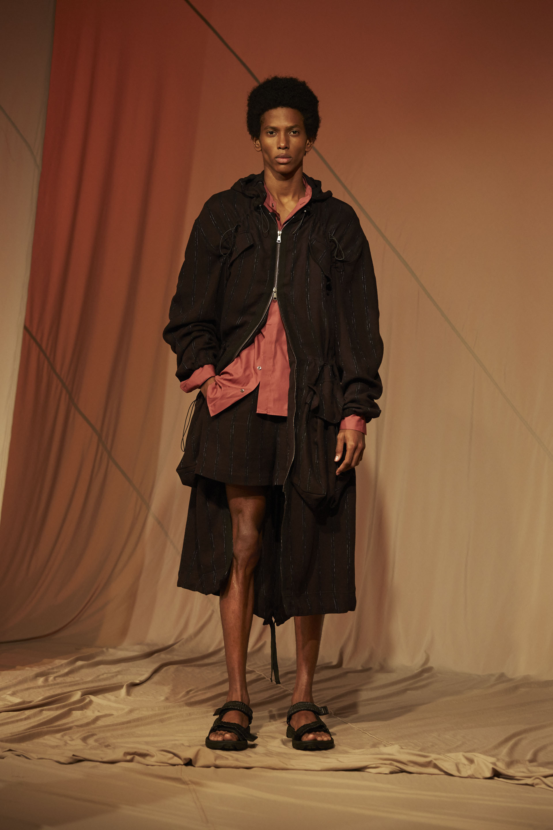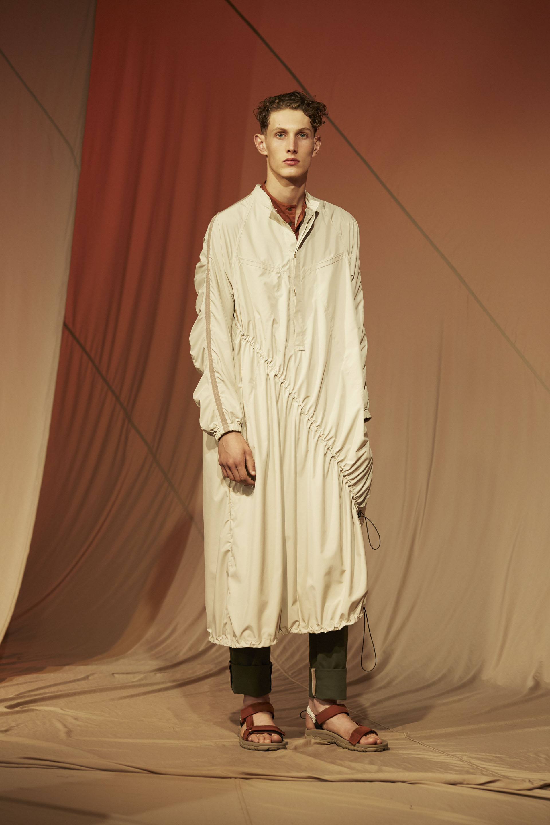 The presentation of QASIMI gives useful garments, neutral colors, military references and loose fittings are part of the Qasimi Spring/Summer 2018 collection in London, titled “Freefall” adding harsh hues such as olive green to broken whites to give the collection a functional and Cool to match with double-strip sandals by TEVA.