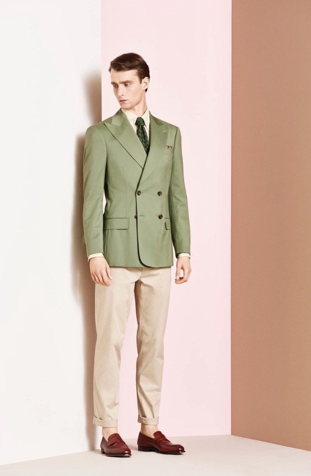 Exquisite wool and silk and linen blends give clean lines and lightness to double-breasted tailoring. Fine ribbed cotton Ottoman and featherweight wool gabardine add finesse and a sublime softness. Cotton boucle jackets lend a real depth of texture.