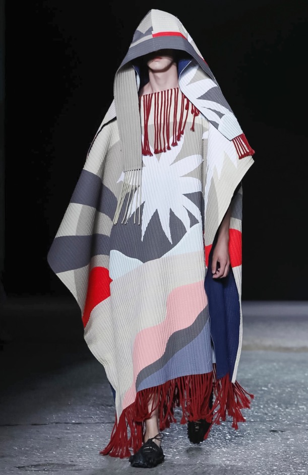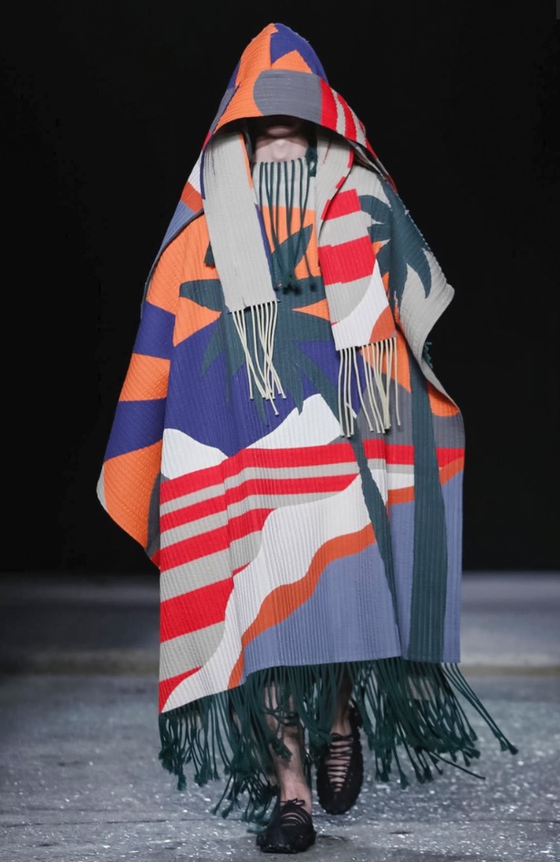 Though the highlight was the finale of massive ponchos and capes in abstract desert hues that will be distilled down and copied by high street chains worldwide. Another reason one comes to London menswear collections. The young designers here have tiny businesses but real global influence.