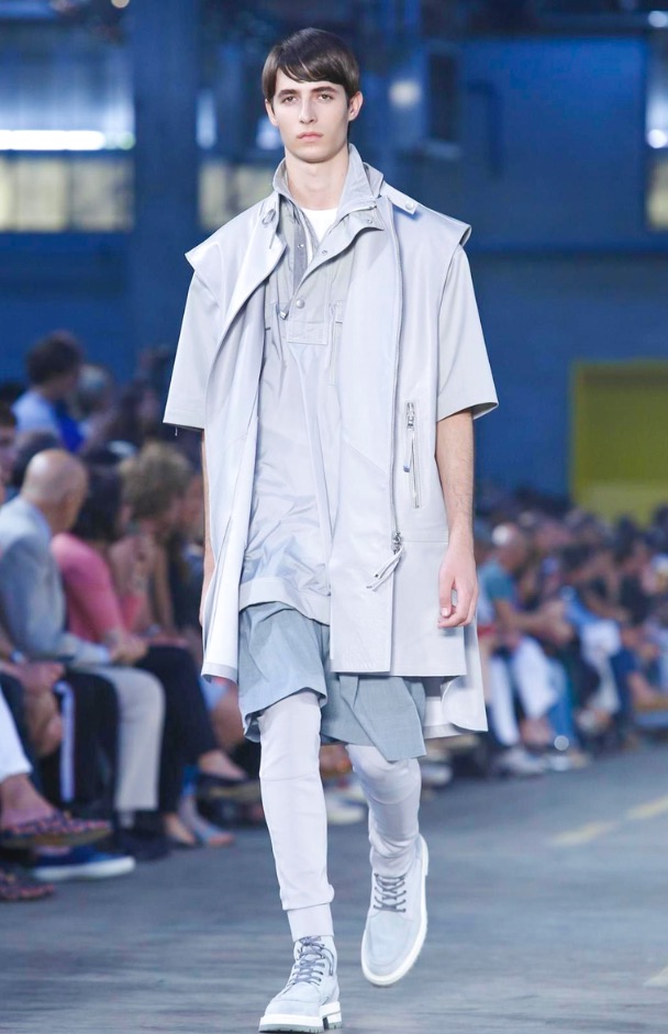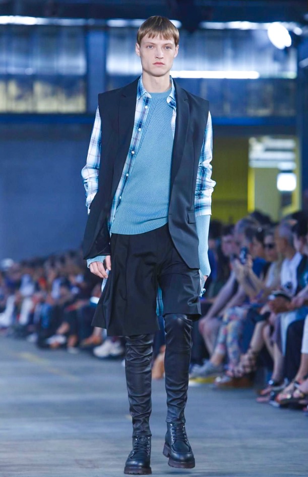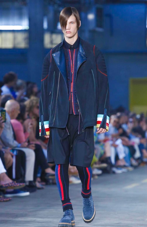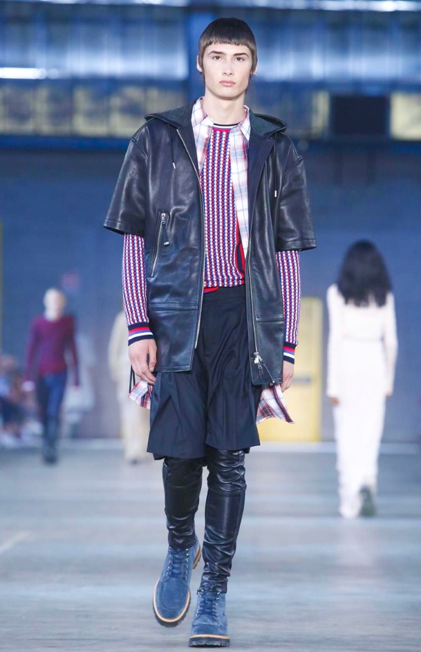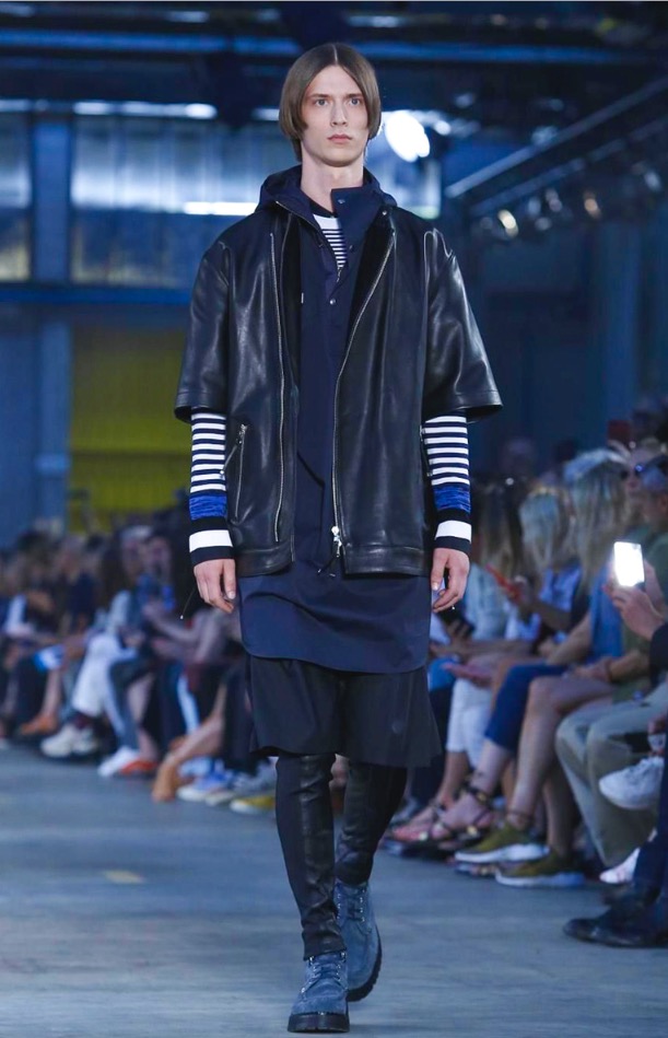 For guys we can see a full sporty chic look, where layer over layer, some oversized layers came to conquer to give that sporty style. But DBG make it on its own, they converted this look in one avant-garde style, mixed it up with leather jackets, leather skinny pants over big shorts, some big parkas protect the layers and coats.