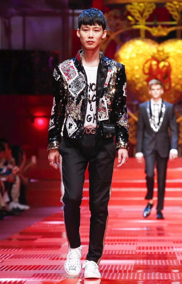 Chinese actor Karry Wang Jun-Kai opens the Collection and now the family is all about (again) for Dolce & Gabbana S/S 2018 they present family members like YouTubers, Bloggers, Vloggers, Actors, Sporty Celebrities, Celebrities, models, top models, actors and actresses this is the royalty of #DGMillennials.