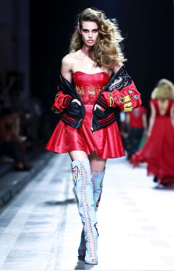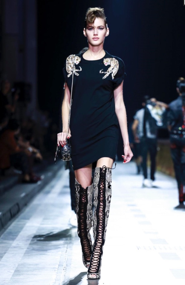 The big catwalk was entire huge speedway, and of course Plein put some big wheels on fire.