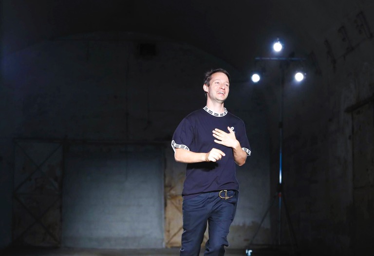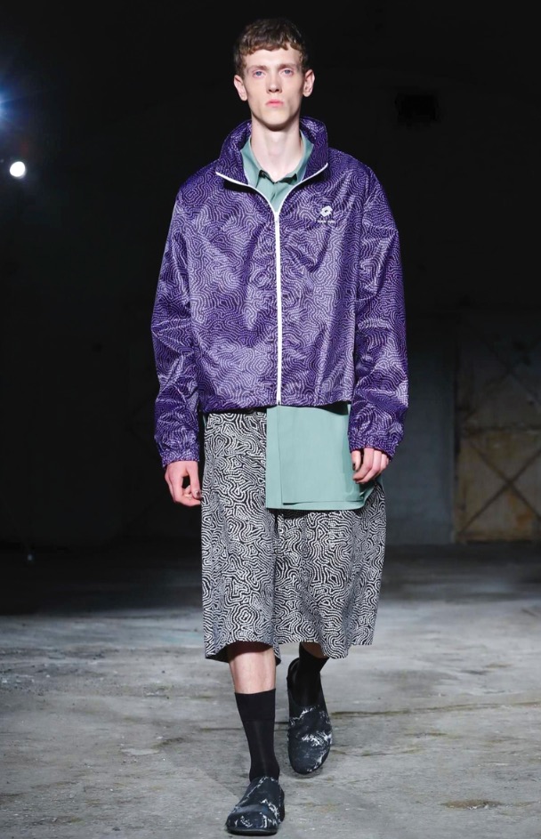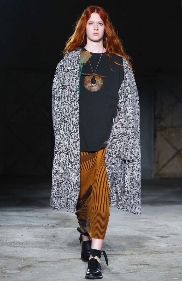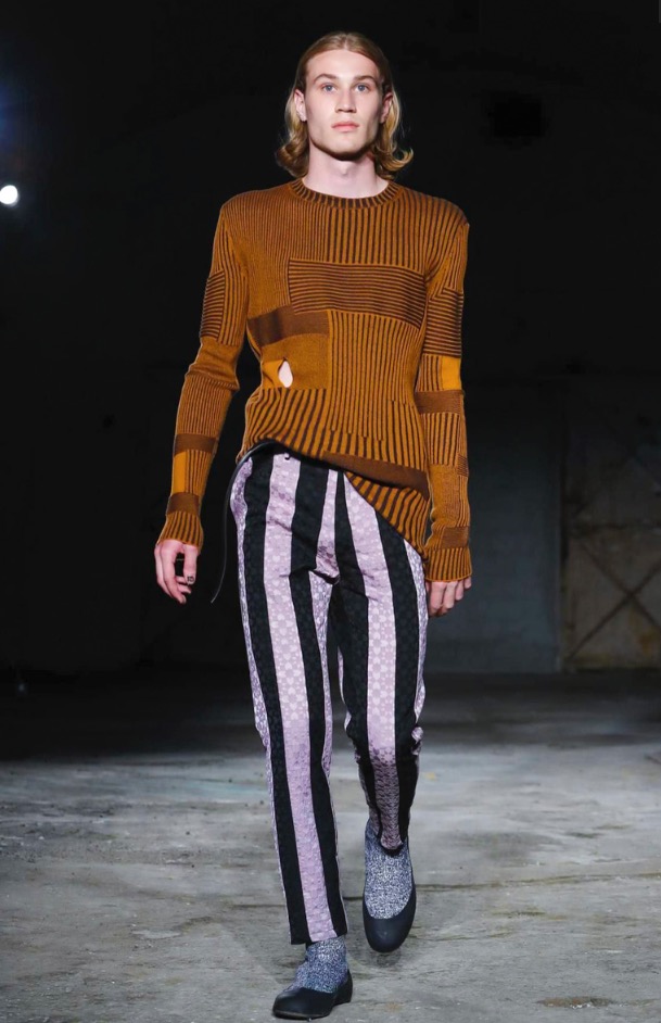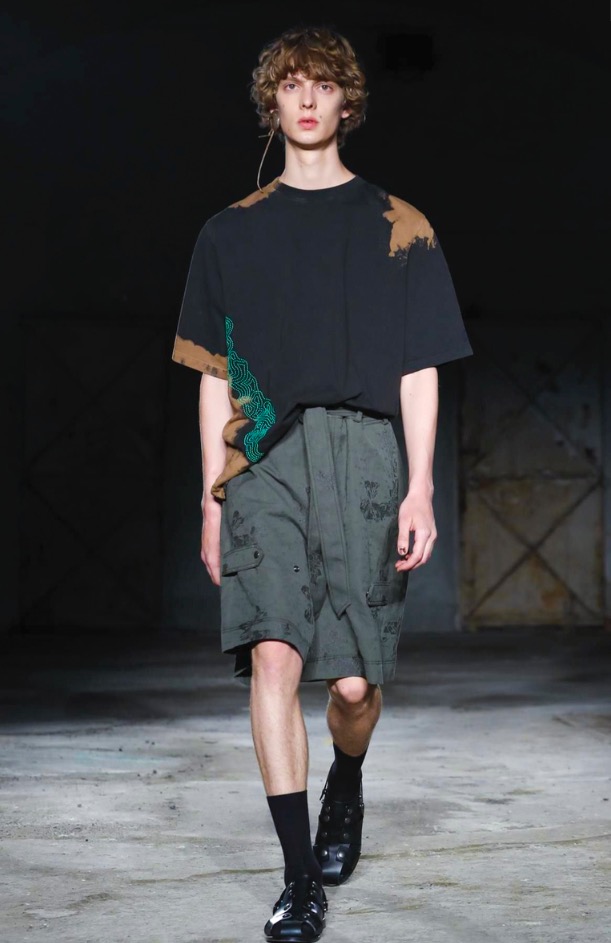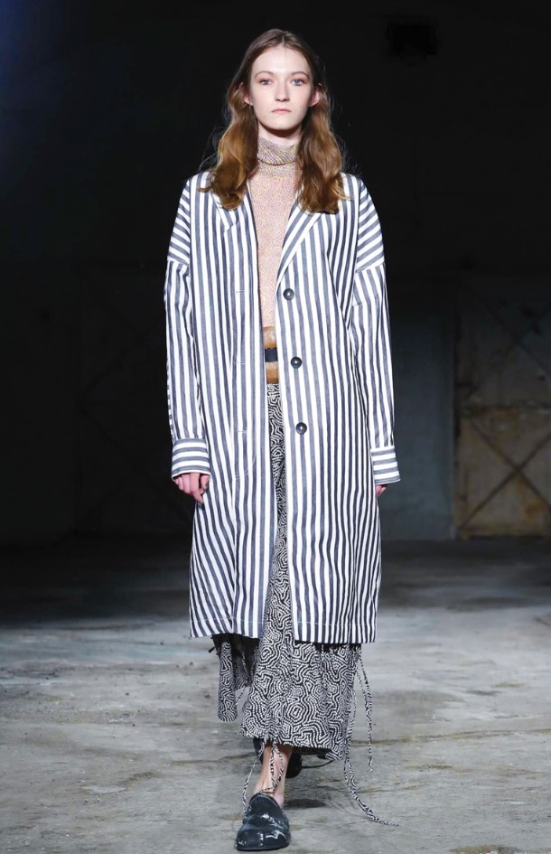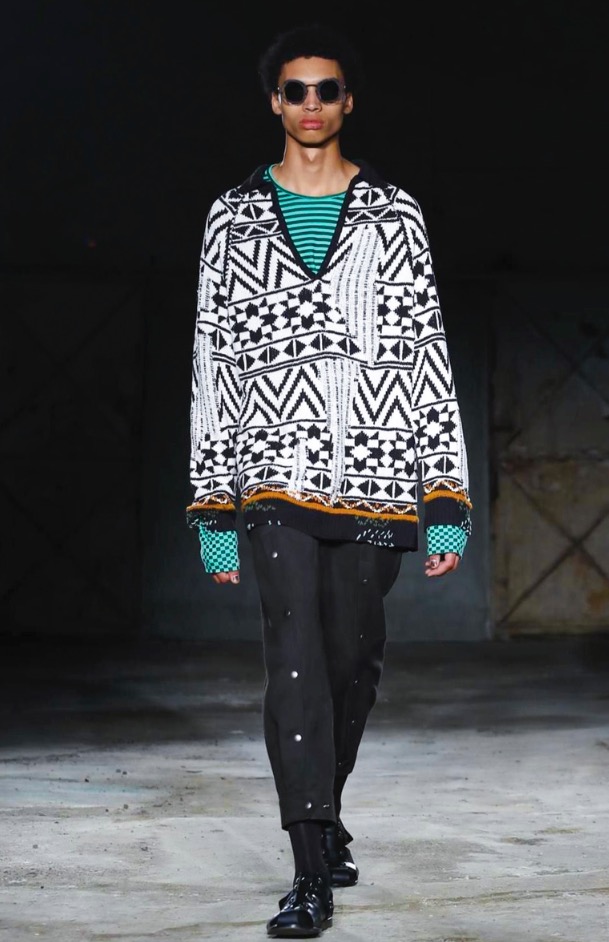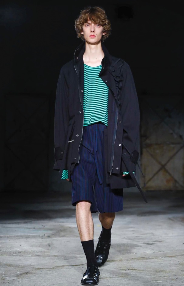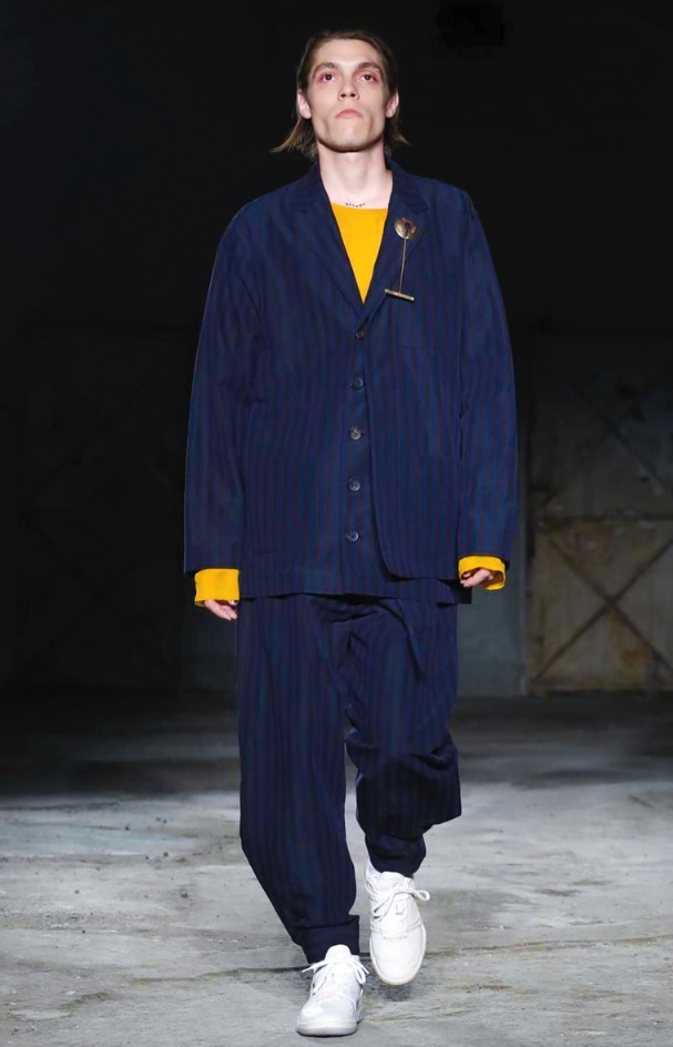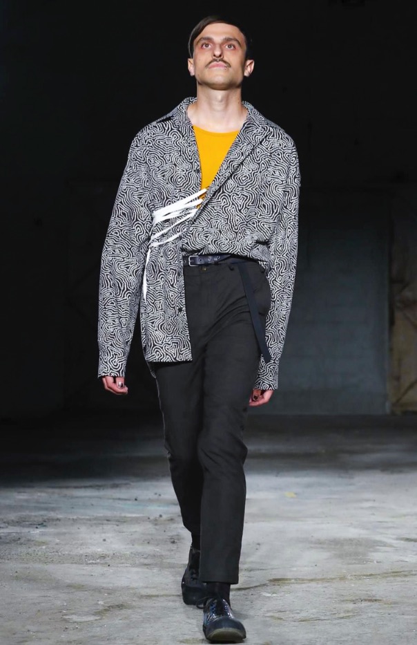 Damir Doma presents genderless fashion show at Via Ferrante Aporti Milano. Including dark garments, layer over layer outfits and a crazy attitude.