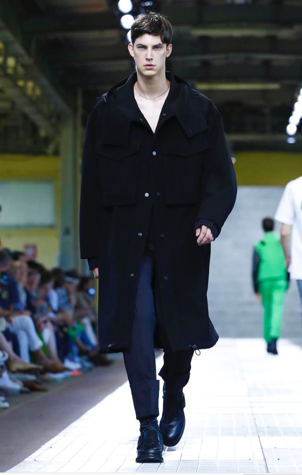 An assertive and straightforward shapes with rhythmic modules, industrial, organic, brutal defined by Dirk Bikkembergs by Lee Wood Spring/Summer 2018 at Scalo Farini Deposito Via Carlo Farini on the 3rd round of Milano Moda Uomo.