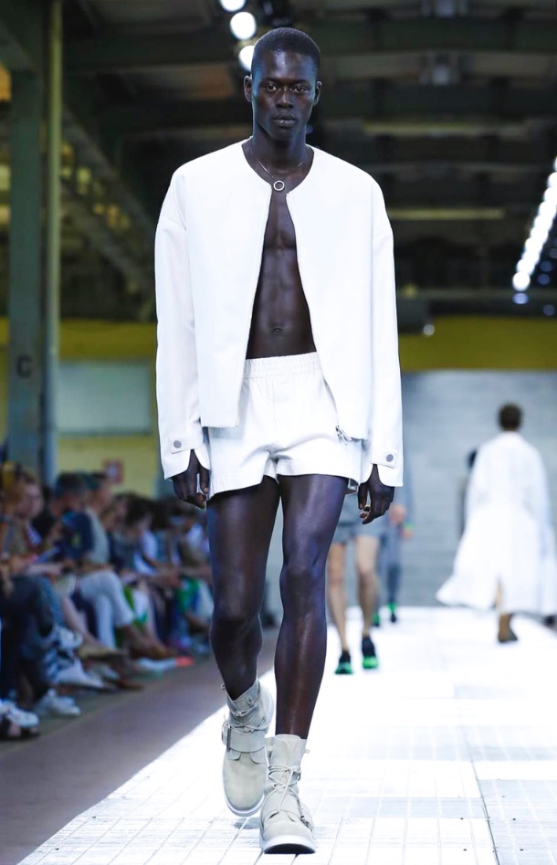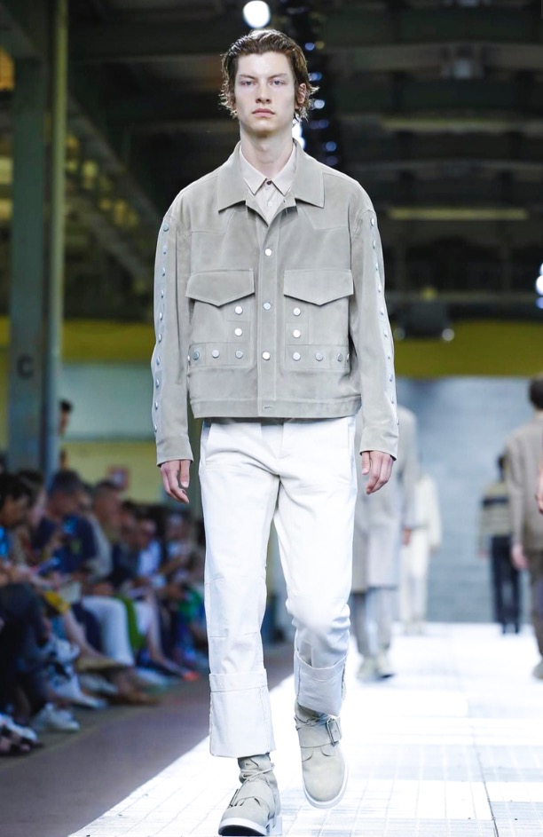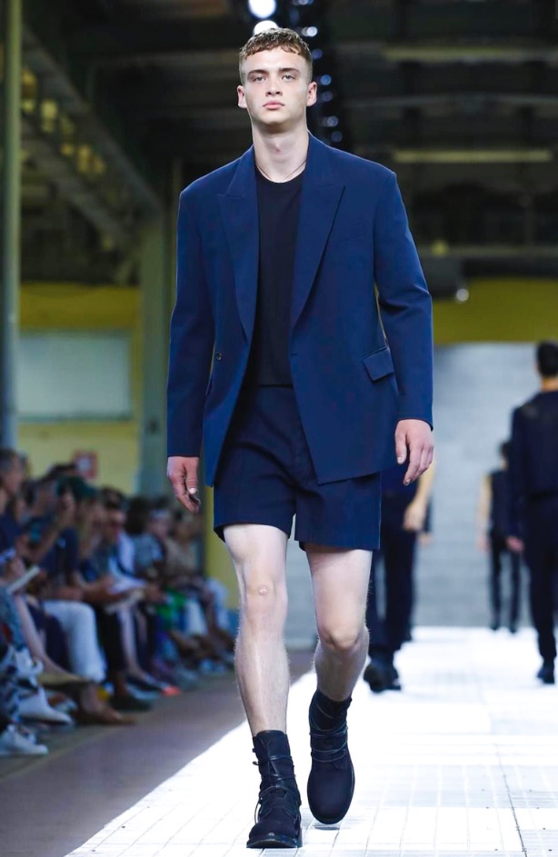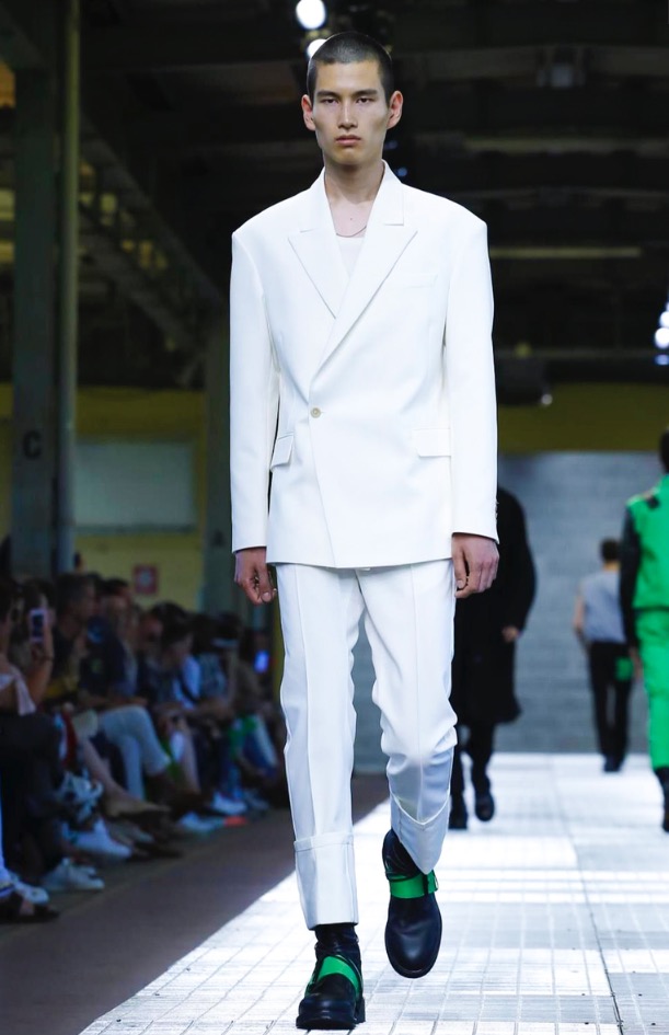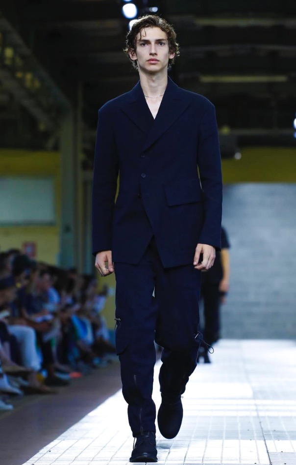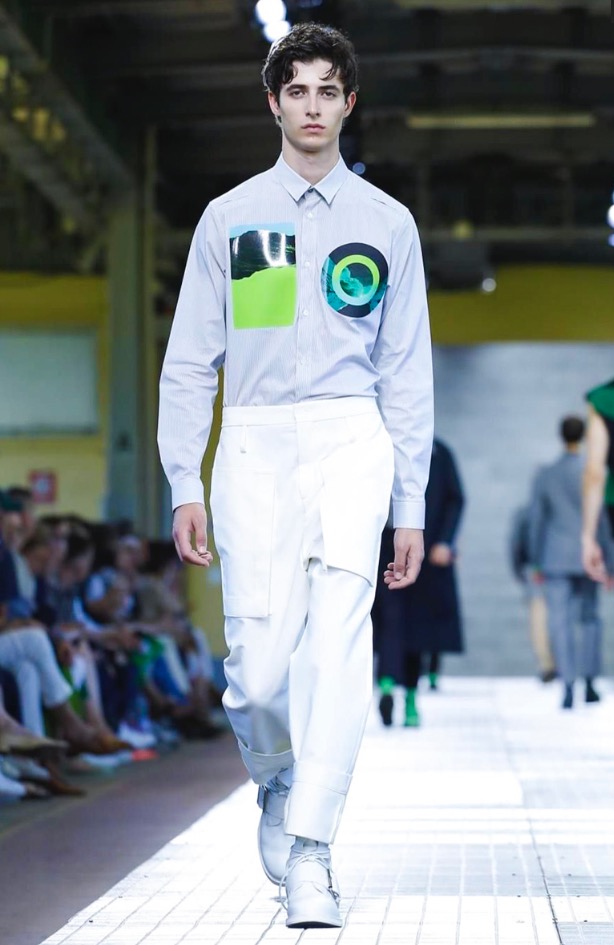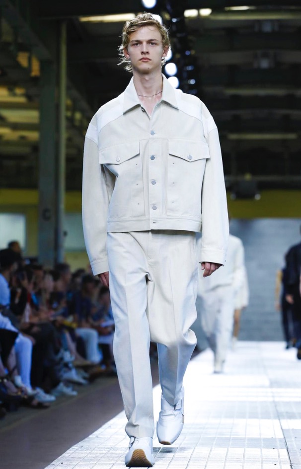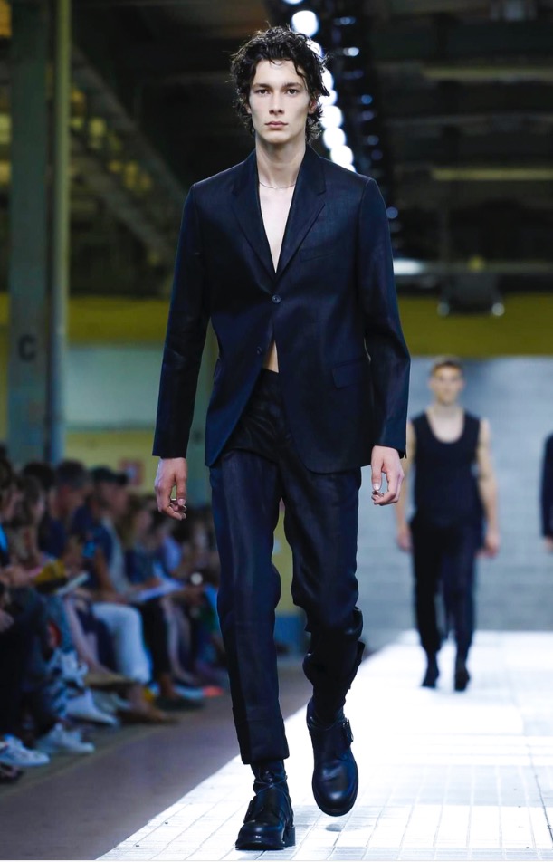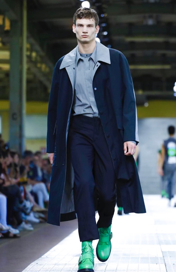 An assertive and straightforward shapes with rhythmic modules, industrial, organic, brutal defined by Dirk Bikkembergs by Lee Wood Spring/Summer 2018 at Scalo Farini Deposito Via Carlo Farini on the 3rd round of Milano Moda Uomo.