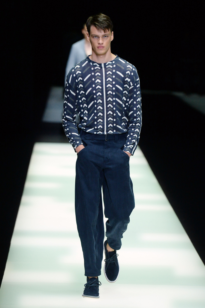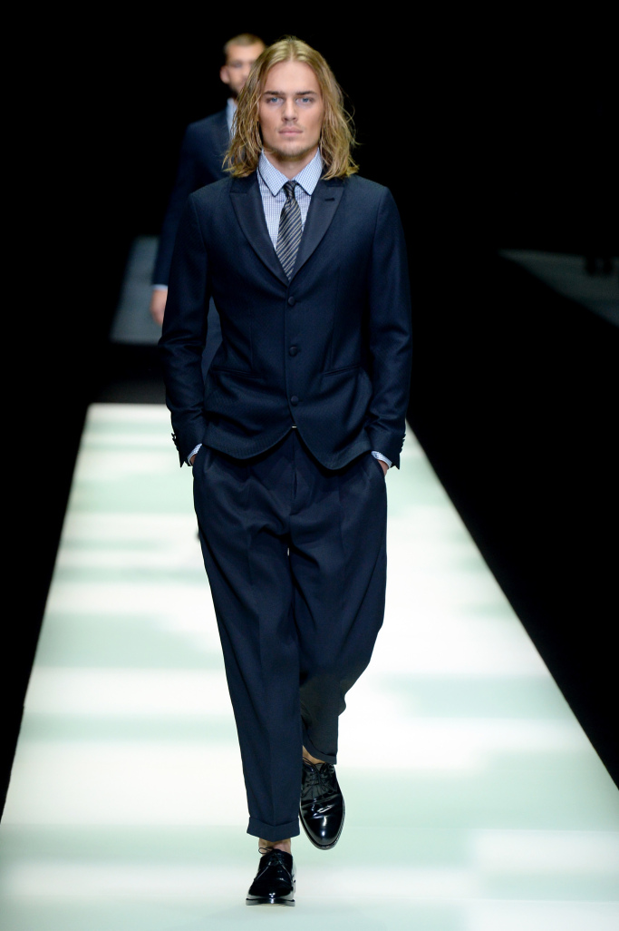 There were no show notes, just one line projected onto the screen above the runway: Made in Armani.